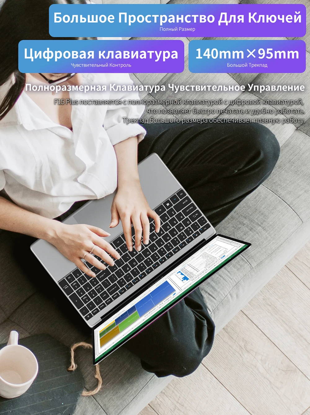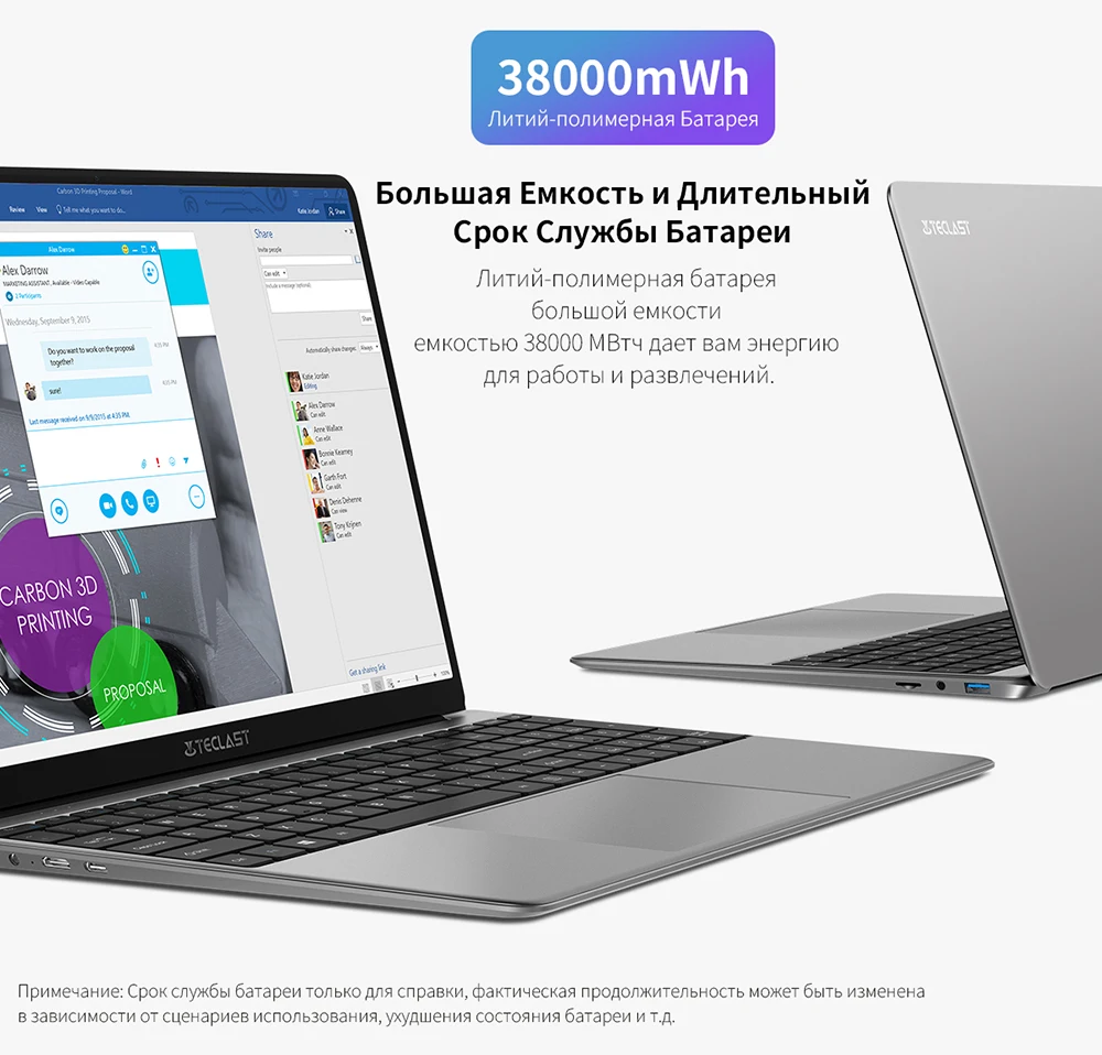 Общий | Бренд: Teclast Номер модели: F15 Plus Классификация: ультрабук Материал задней крышки: металл Время работы от аккумулятора (до): 9 часов смешанного использования (воспроизведение локального видео в режиме по умолчанию) Тип батареи: литий-ионный аккумулятор Микрофон: поддерживается Динамик: Встроенный двухканальный динамик |