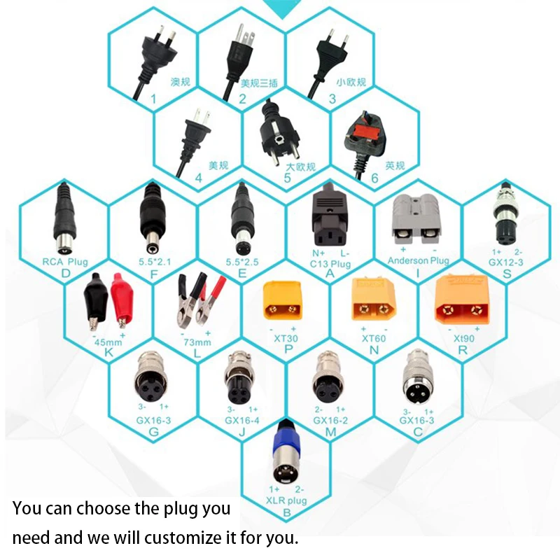 Пожалуйста, оставьте четкие слова о входных вилках переменного тока и выходных вилках постоянного тока, Like'AC:Number 5, DC:G', особенно «» и «f', в противном случае мы отправим вилку C13, спасибо!