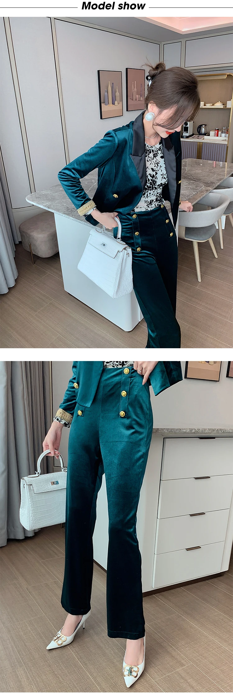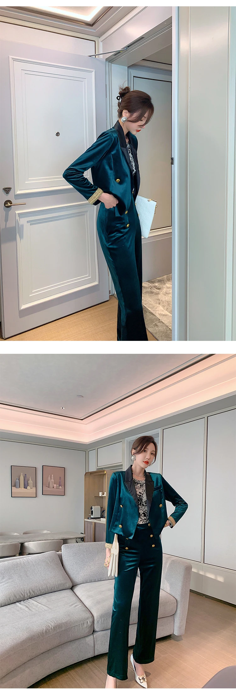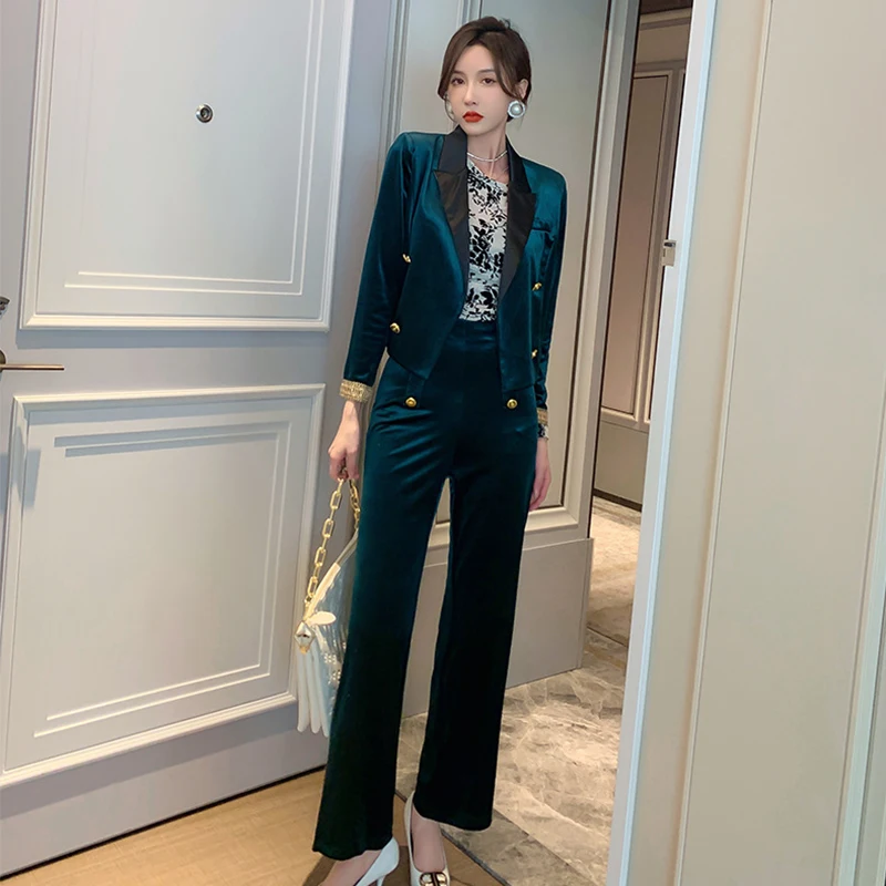Отзывы о Женский бархатный костюм двубортный пиджак широкие брюки комплект из 2 предметов