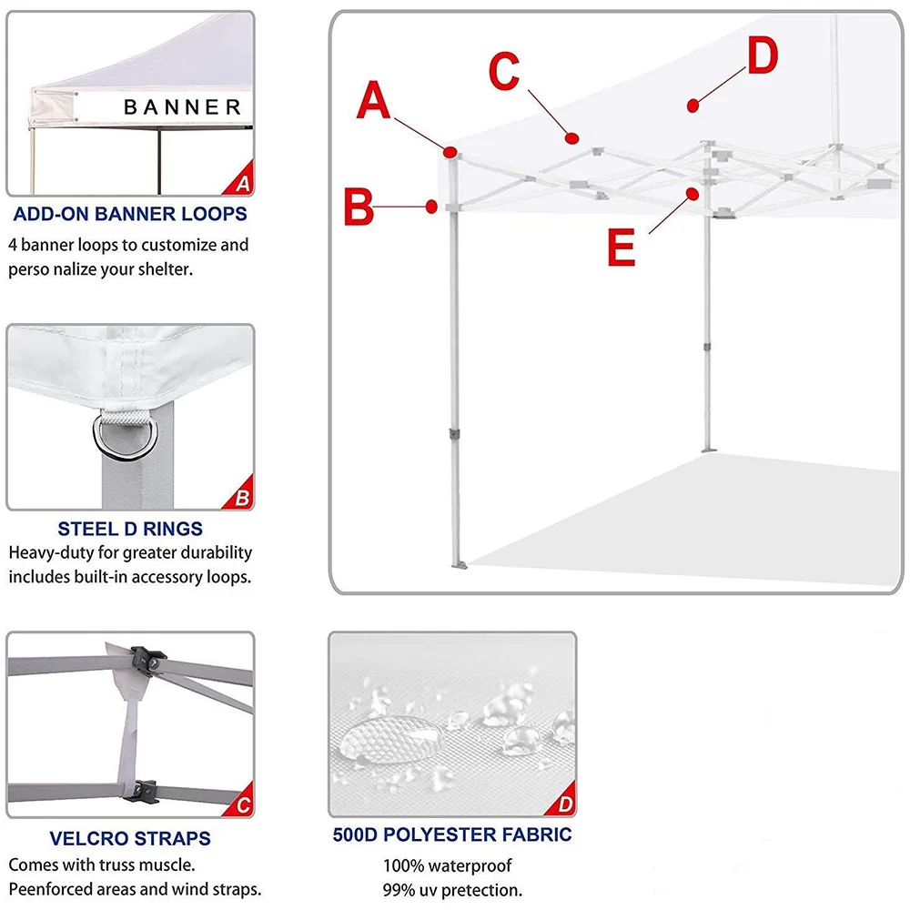 Сверхплотная 500D полиэфирная ткань, 99% УФ-защита и UPF50 + Оценка и водонепроницаемость. Баннерные петли, сшитые на передней части, чтобы повесить ваш баннер.