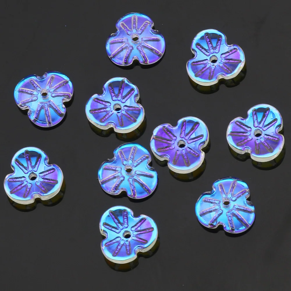 Три лепестка цветок прозрачный AB синий Чешский Градиент стеклянные бусины Свободные бусины для самостоятельного изготовления ювелирных изделий ожерелье принадлежности для браслетов