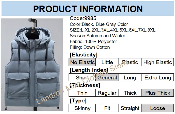 Для того, чтобы помочь вам выбрать правильный размер, вы можете взять свой старый зимний жилет, чтобы измерить бюст жилета, а затем выбрать в соответствии с таблицей размеров.