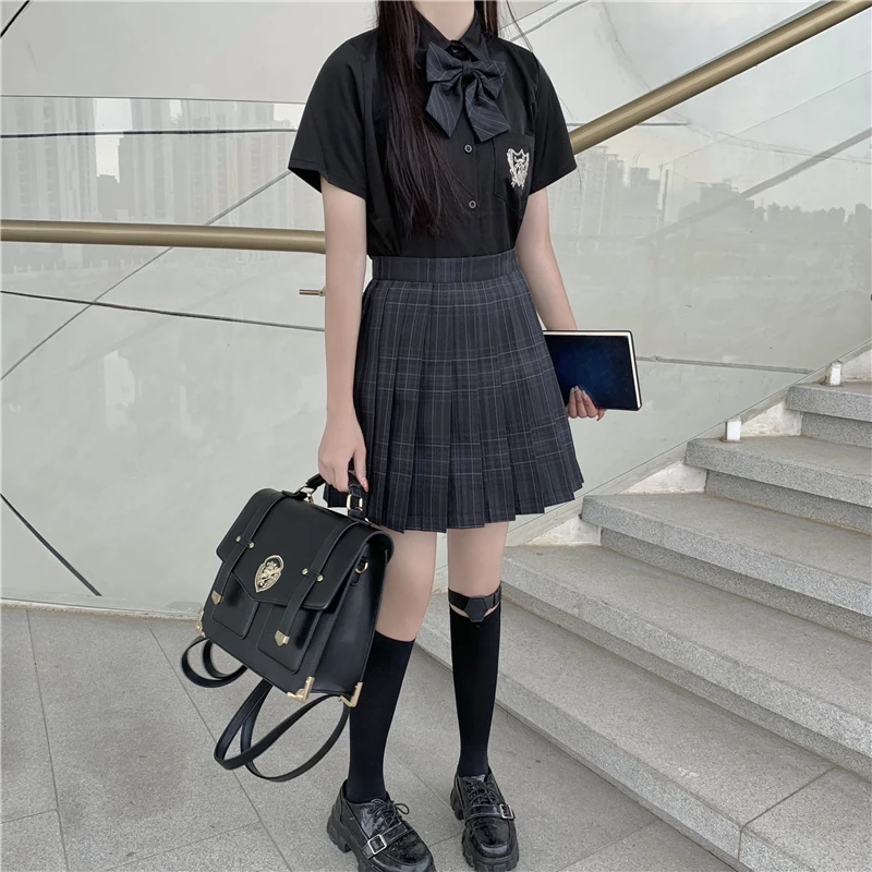 Отзывы о Черная клетчатая юбка HOUZHOU в стиле Харадзюку женские готические плиссированные