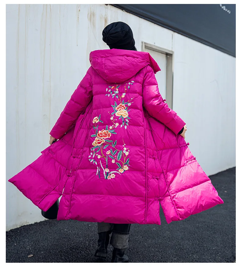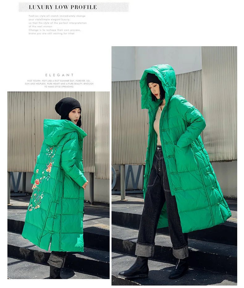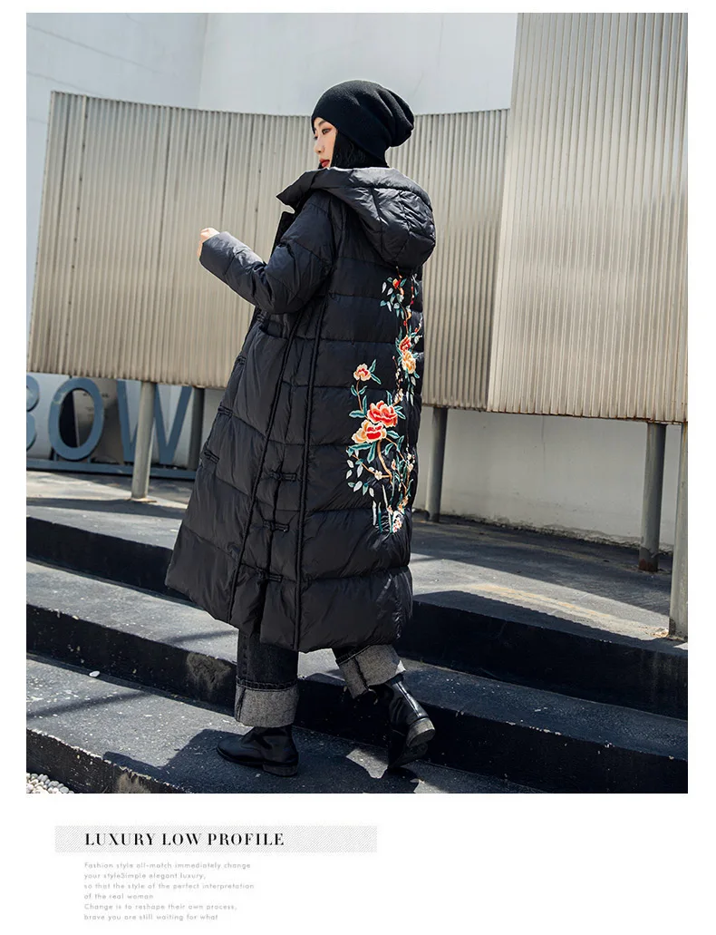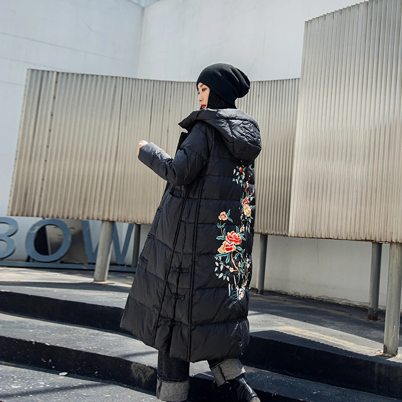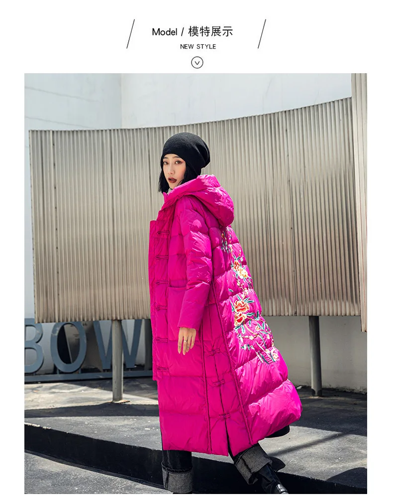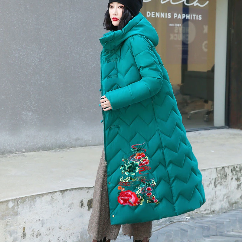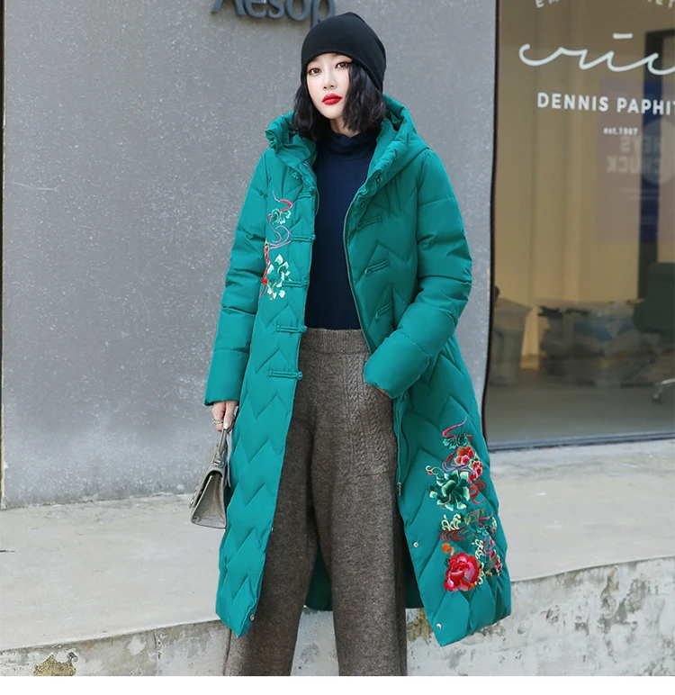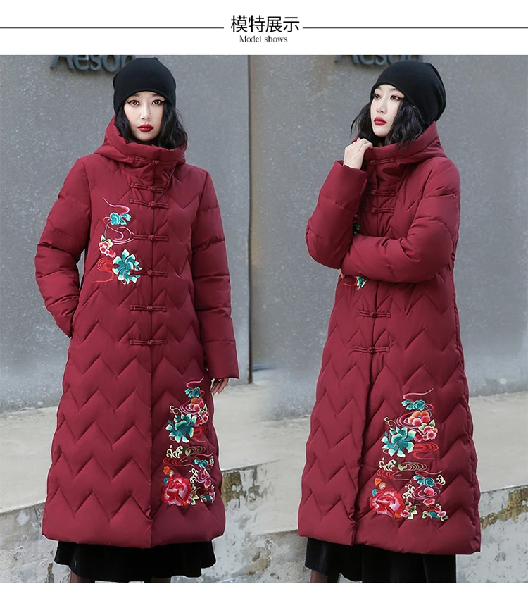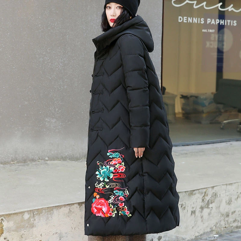 Отзывы о Женский пуховик с вышивкой Зимняя Толстая длинная куртка в этническом