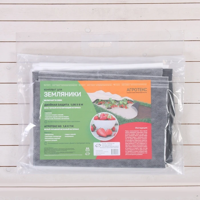 Комплект нетканого материала для земляники (бело-чёрный 1,06 × 6 м, плотность 80 г/м² + белый 1,6 × 7 м, плотность 60 г/м²)