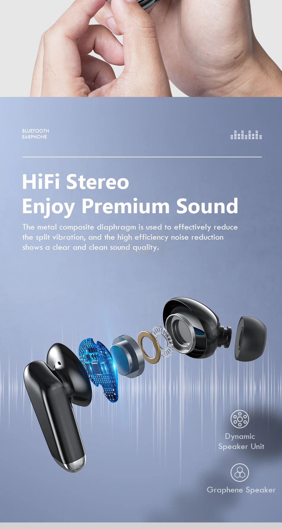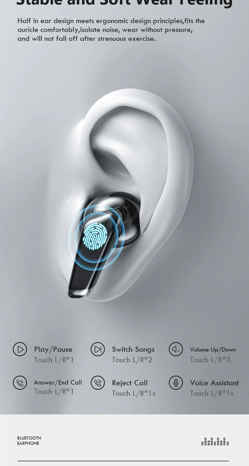 Мини Bluetooth совместимый ушной телефон со светодиодным дисплеем питания 24h Playtime беспроводные наушники сережки с сенсорным управлением спортивные водонепроницаемые