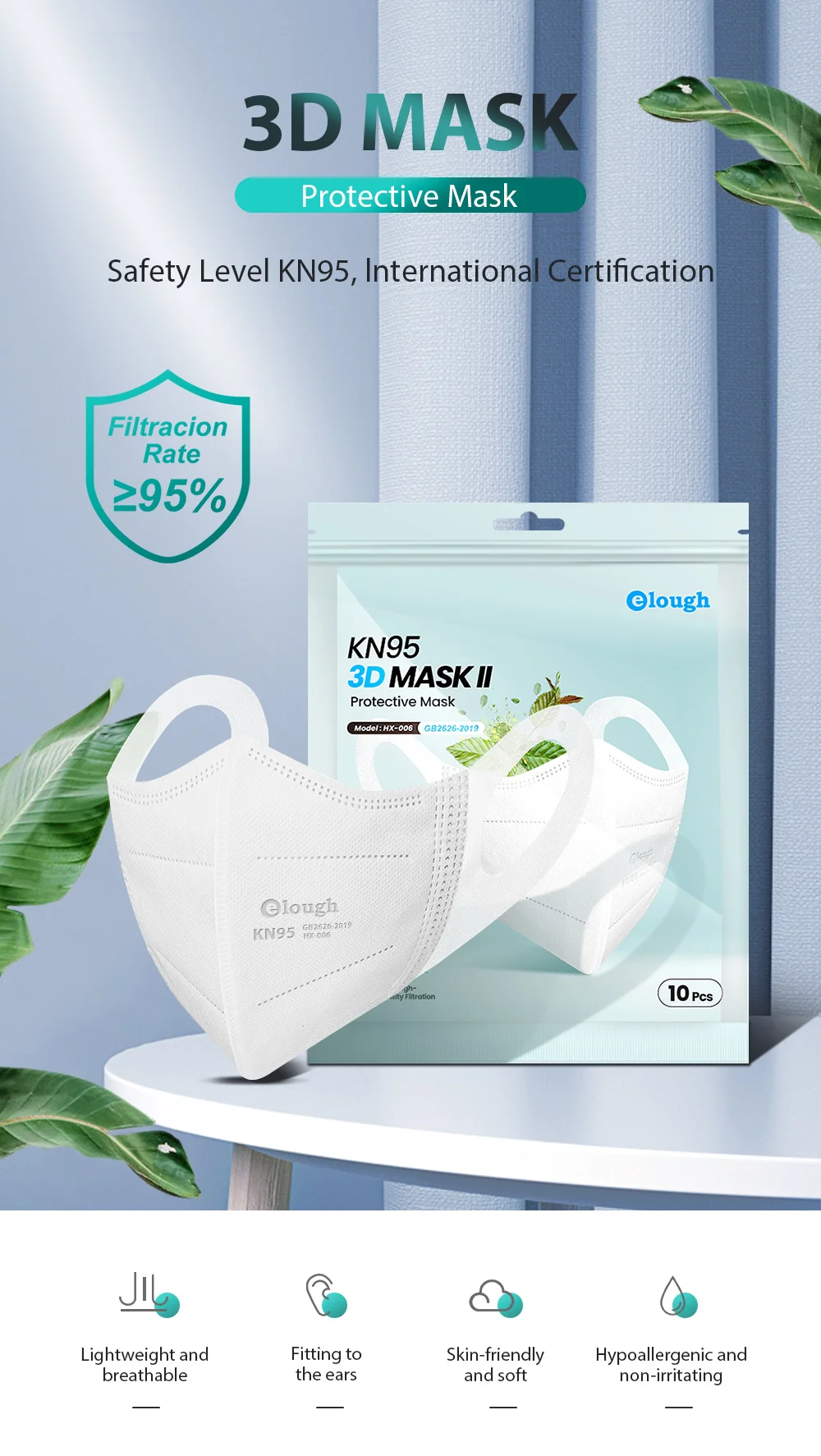 Отзывы о Elough Mascarilla FPP2 Homologada 3D CE FFP2Mask 4-слойные маски KN95 FP2 5 цветов FFP2 Mascarillas Certificadas España |