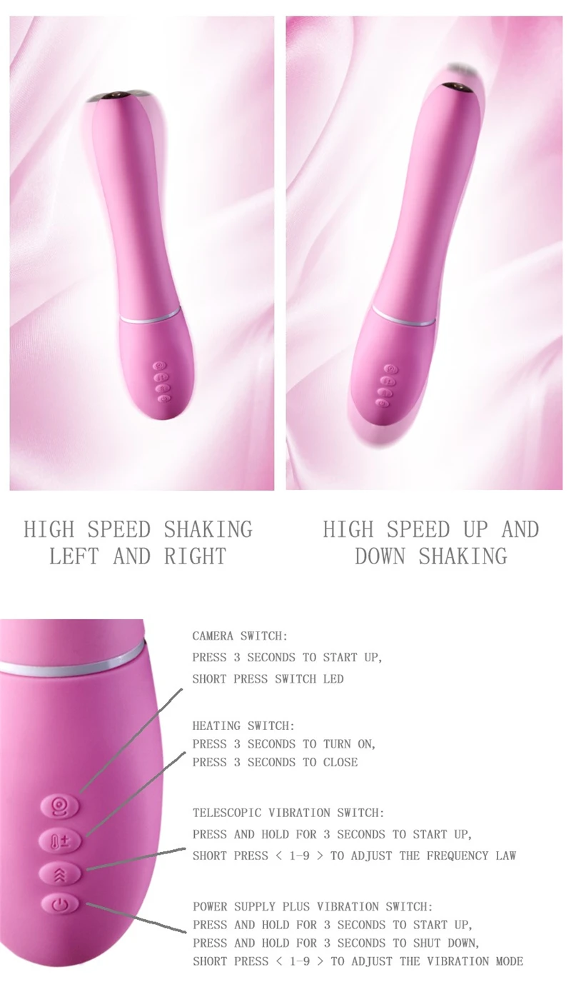 Примечание: Нажмите 3 секунды, чтобы начать нагревание/изменение режима вибрации, режим двигателяФункция: водонепроницаемый, сильный двигатель, 10 скоростей вибрации, стимуляция точки G и клитора, Hd съемка, Управление приложениями, сильное движение, светильник, нагревание, функция массажа красотыВодонепроницаемость: IPX7Стиль: вибрационное управление через приложение, 42 нагревания, две головки можно свободно менятьЦвет: розовыйИнформация о безопасности:* Очистите антибактериальным мылом и водой до и после использования, чтобы минимизировать риск заражения.* Не используйте очистители на основе нефти или каких-либо синтетических химических веществ для очистки массажера.* Не используйте во время менструации. Храните продукт для себя и не делитесь с другими людьми.Посылка включает:1 * Основной блок1 * USB кабель для зарядки1 * Руководство пользователя