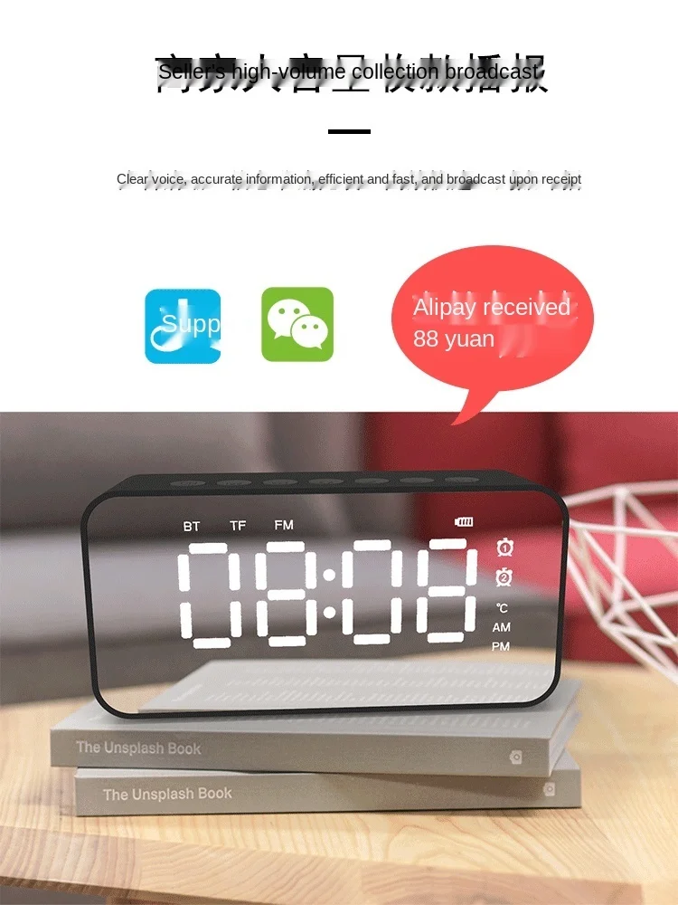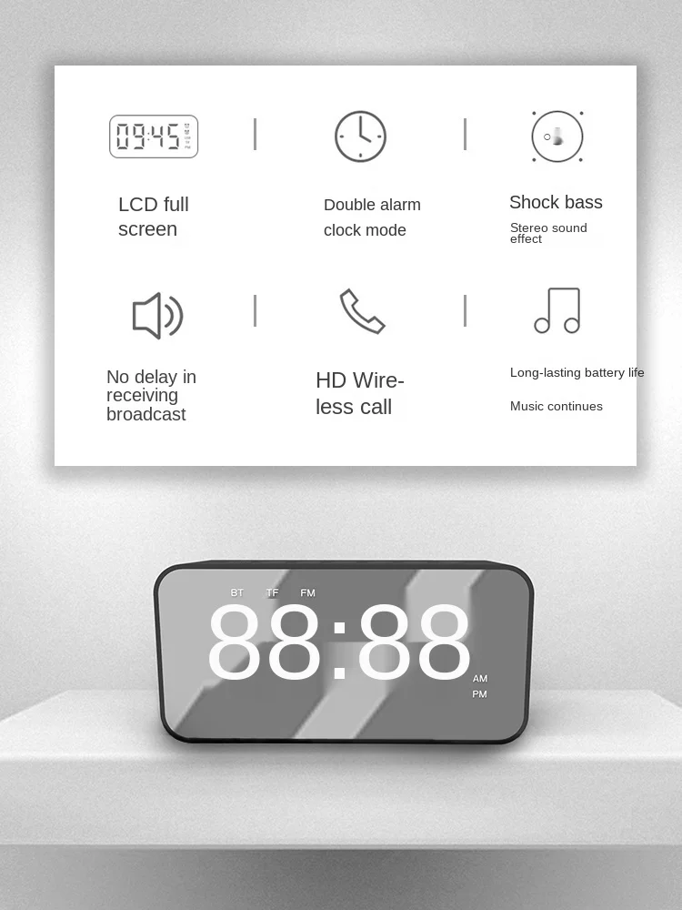 Отзывы о Зеркальный портативный динамик беспроводной мини-браслет экран часы будильник