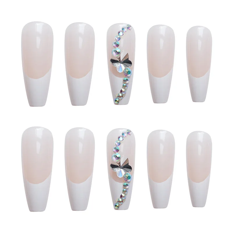 24 шт./компл. длинные искусственные ногти с жемчугом и сердечком белые французские накладные ногти с клеем для невесты, балерины, украшения для ногтей