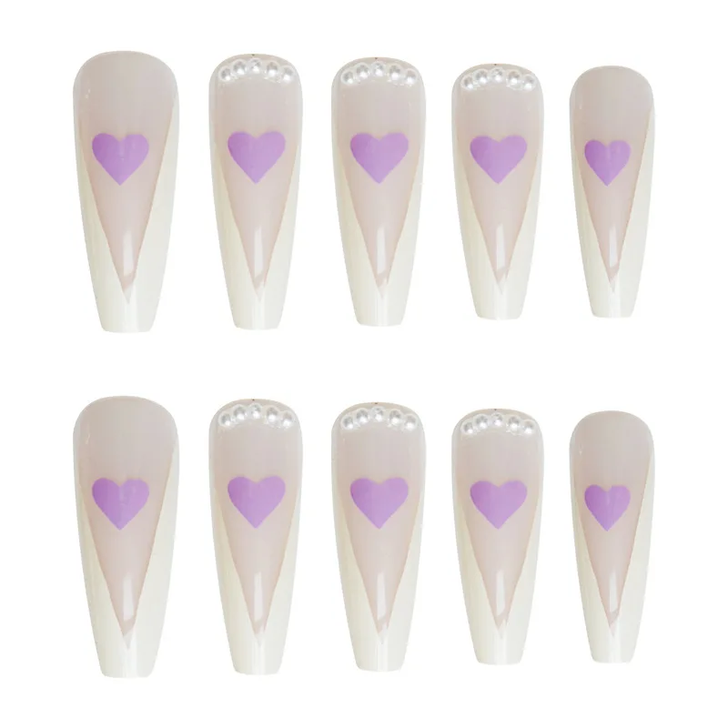 Отзывы о 24 шт./компл. длинные гвозди искусственные ногти жемчужный узор сердца белые