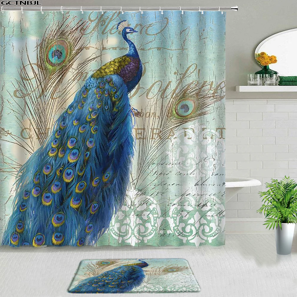 Отзывы о Набор занавесок для душа с принтом павлинов в китайском стиле коврики ванной