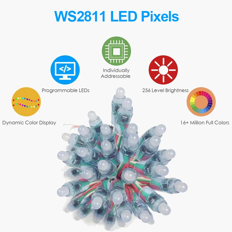 Отзывы о 50 шт. DC5V/DC12V 12 мм WS2811Full Color LED Pixels String Lights 2811 IC RGB Цифровой адресный светодиодный