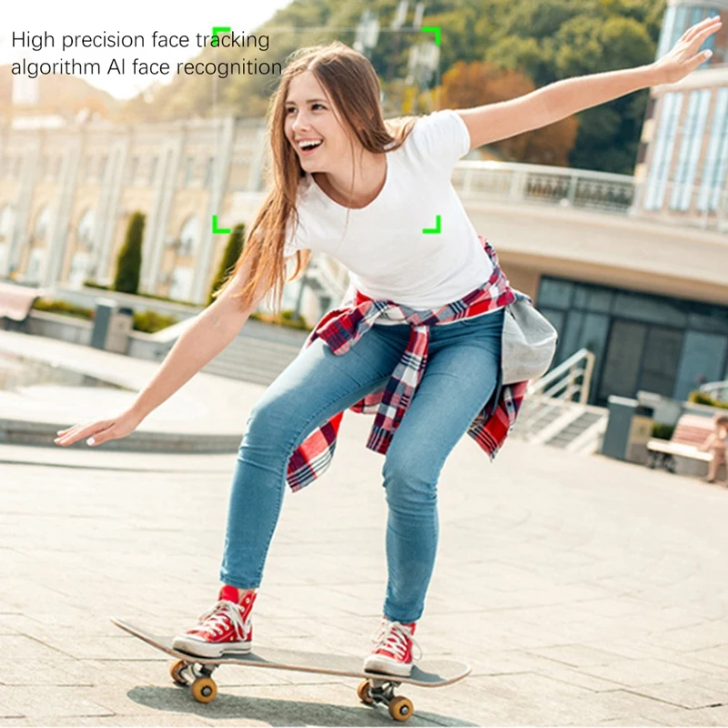 Full product features: real-time visual follow, 360-degree rotation, face follow