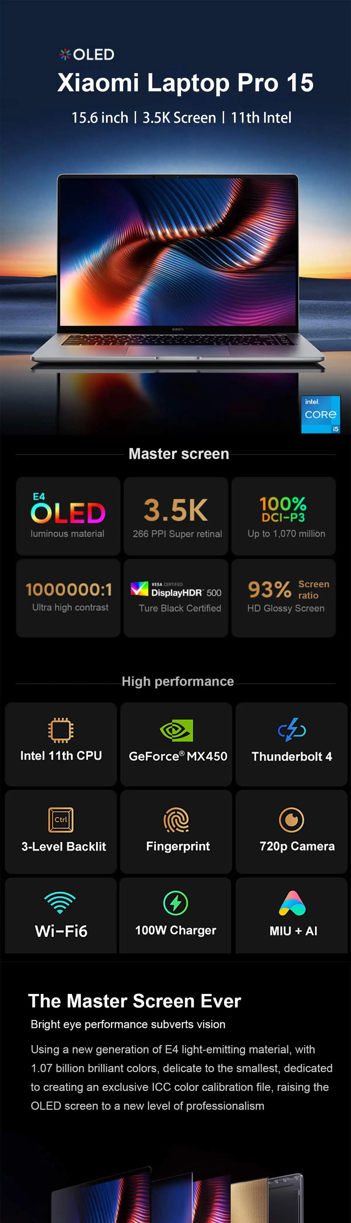 Отзывы о Ноутбук Xiaomi Mi Notebook Pro 15 Intel Core i7-11370H/i5-11300H 3 5 K OLED экран 6 дюйма 16 ГБ + 512 MX450 компьютер