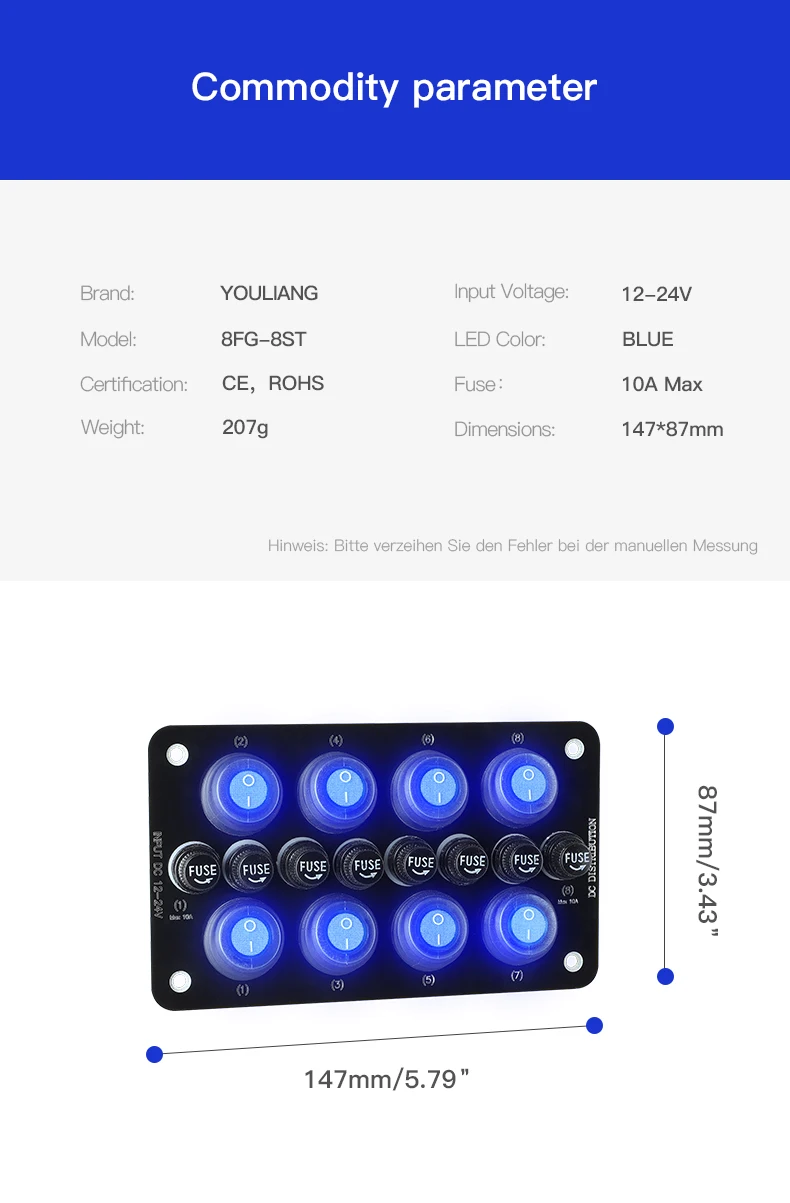 Рычажный Переключатель 12 В, 8 позиций, электронные аксессуары для автомобилей, лодок, многопортовый переключатель, кнопка включения/выключения, тент для лодки, для дома на колесах, кемпере, порте