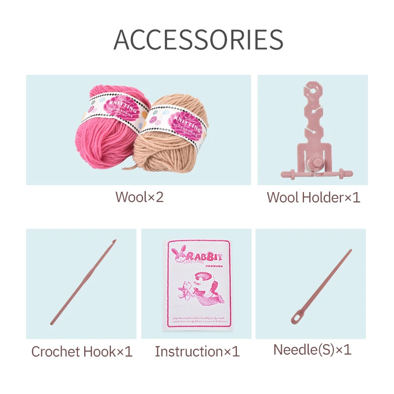 4. Конфигурация продукта: вязальная игла, ручная игла, стойка для ниток, шерстяная нить (2 пряди), руководство