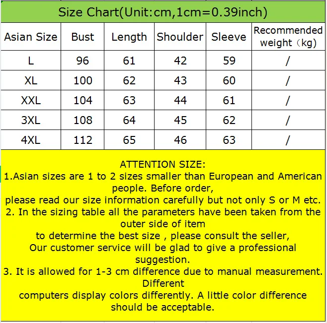 | Внимание Размер: 1. Азиатские размерыОт 1 до 2 размеров меньше, чем европейские и американские люди. Перед заказом, Пожалуйста, внимательно прочитайте нашу информацию о размерах, но не только S или M и т. д. 2. В таблице размеров все параметры были взяты с внешней стороны изделия Чтобы определить лучший размер, пожалуйста, обратитесь к продавцу, Наша служба поддержки клиентов будет рада предоставить профессиональное предложение. 3. Допускается дляРазница в 1-3 смИз-за ручного измерения. Разные Компьютеры отображают цвета по-разному. Возможна небольшая разница в цвете. |