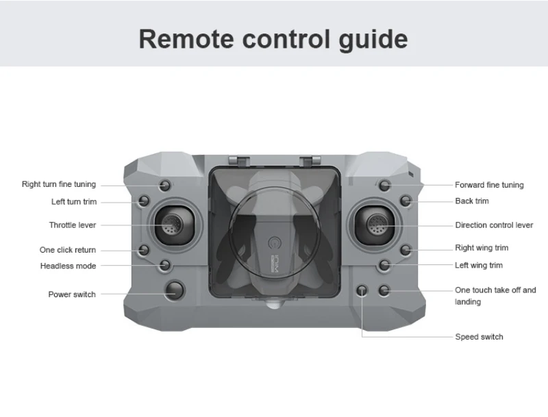 Функции: вверх/вниз, вперед/назад, поворот влево/вправо, боковой фонарь F, светильник, Безголовый режим, автоматический возврат одной кнопкой, режим удержания высоты, качение на 360 °, wiFi FPV