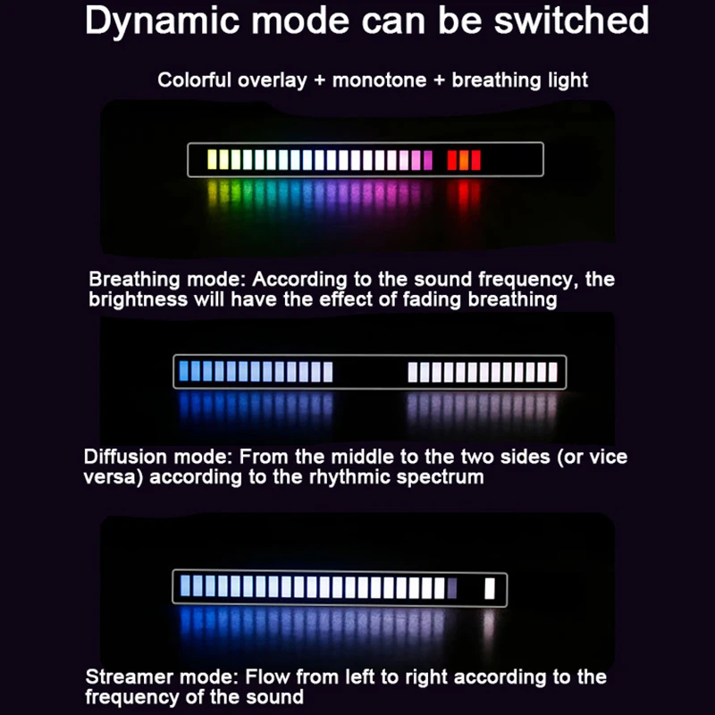 1. Режим дыхания: в соответствии с частотой звука, яркость светильник будет иметь эффект выцветания дыхания