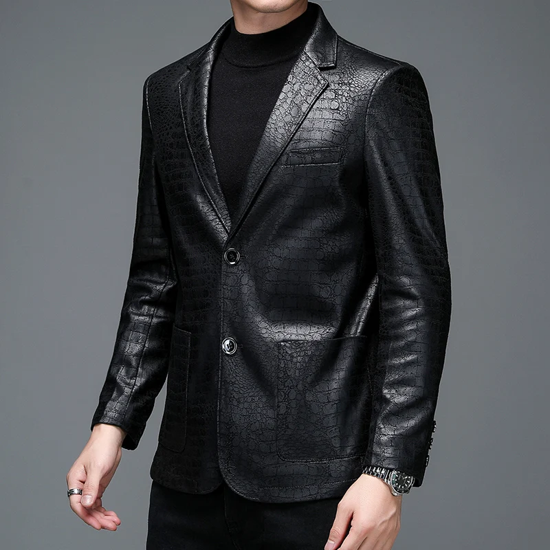 Отзывы о Кожаный костюм мужской деловой с тиснением под змеиную кожу высококачественный