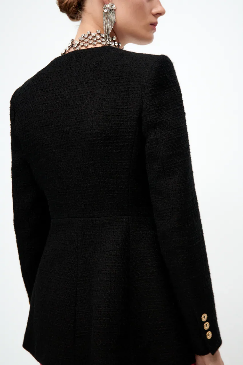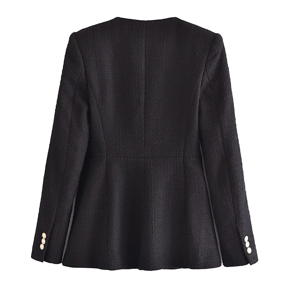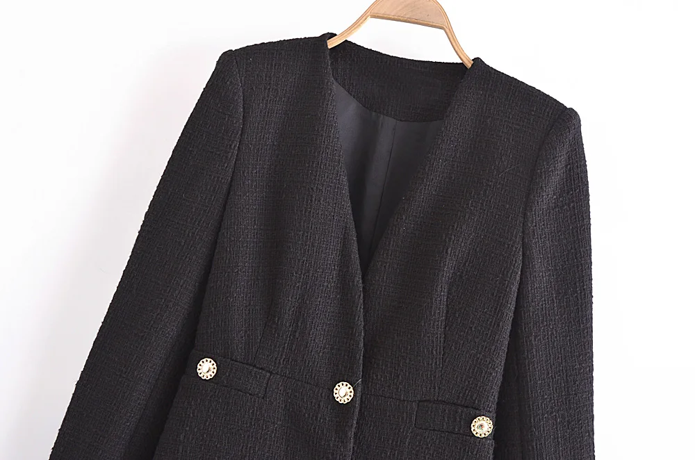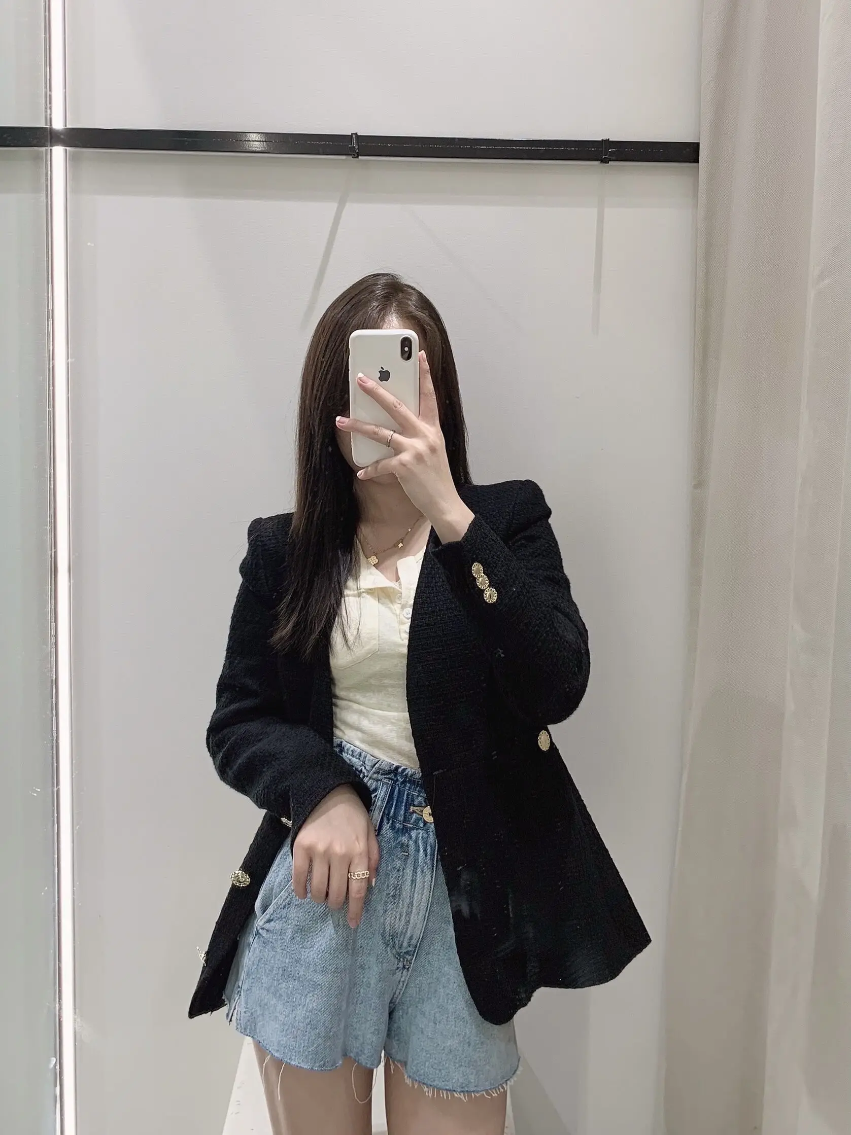 Отзывы о Женский твидовый блейзер с карманами ZA Черный винтажный пиджак длинными