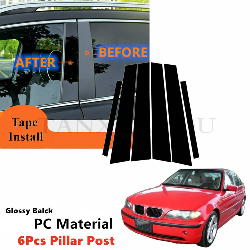 Отзывы о Decal Cover PC 6pcs Set Fit For BMW 3 Series E46 99-05 320i 325i 330i Side Door Window Gloss Black Trim Pillar Posts Piano - купить по