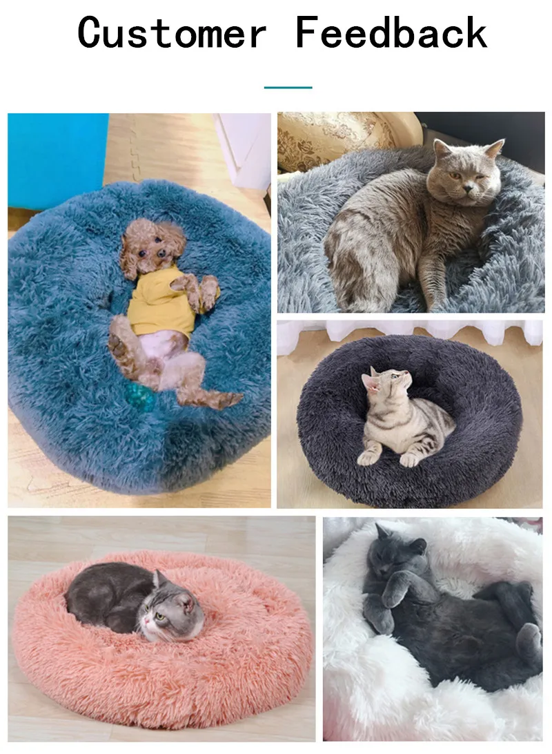 Отзывы о Многоцветная круглая Лежанка для кошек длинная плюшевая кровать корзина мягкая