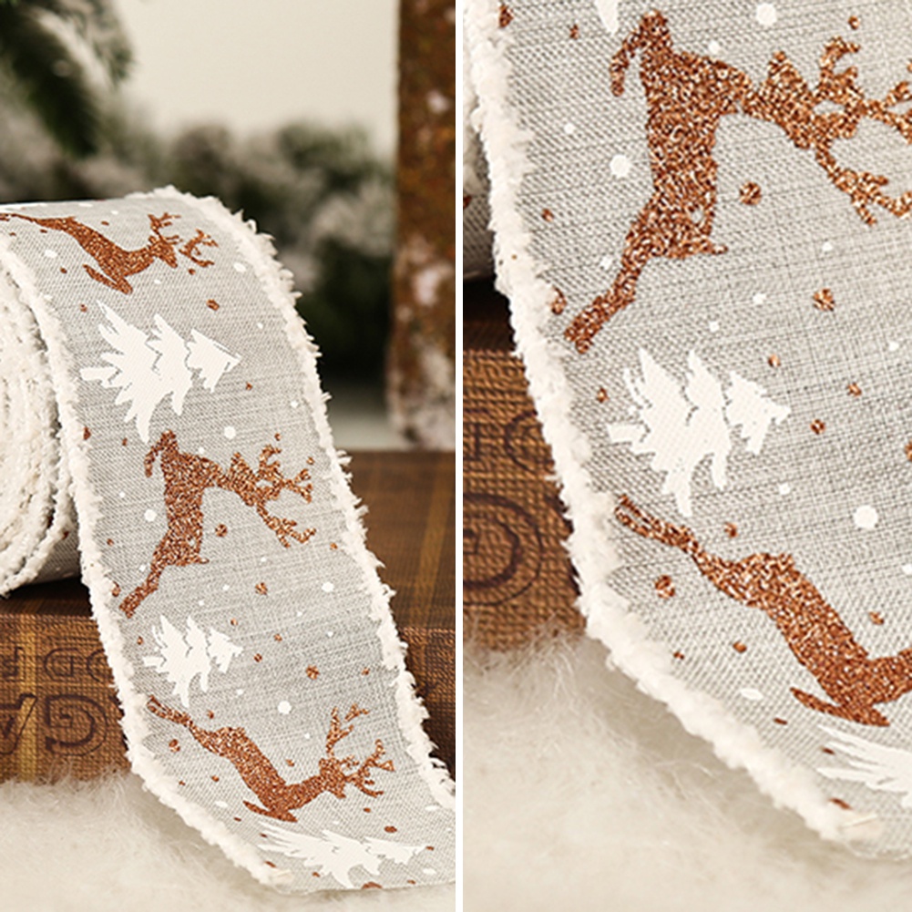Рождественский дизайн: Наши рулоны рождественской льняной ленты украшены красными, розовыми и серыми цветами, украшены белыми рождественскими елками, лосем и т. д., изысканными и полными праздничной атмосферы, подходит для Рождества и нового года.