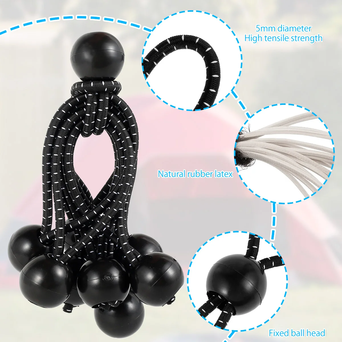 【Прочный материал 】 эти шаровые банджи-шнуры изготовлены из натурального латексного шелка, здоровые и экологически чистые, хорошая эластичность, сильная выносливость и надежное качество.