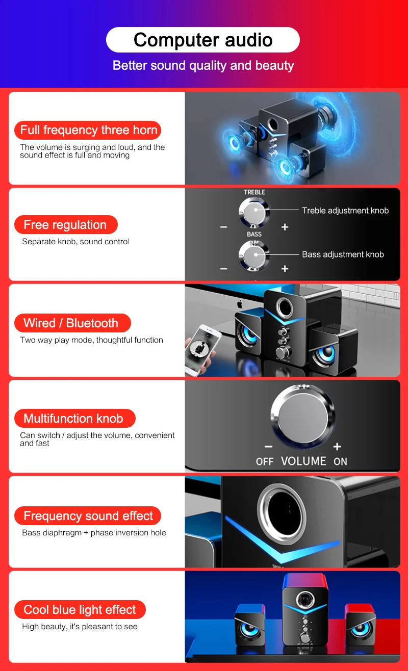 Отзывы о Home Theater System PC Bass Subwoofer Bluetooth-compatible Speaker Computer Speakers Music Boombox Desktop Laptop Altavoces TV |