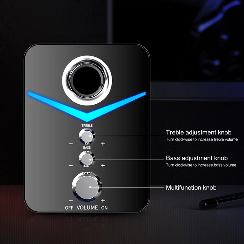 Standard version: 3 full-range speakers + strong bass diaphragm, volume adjustment, power switch, lighting effect, cable length about 1.5 meters