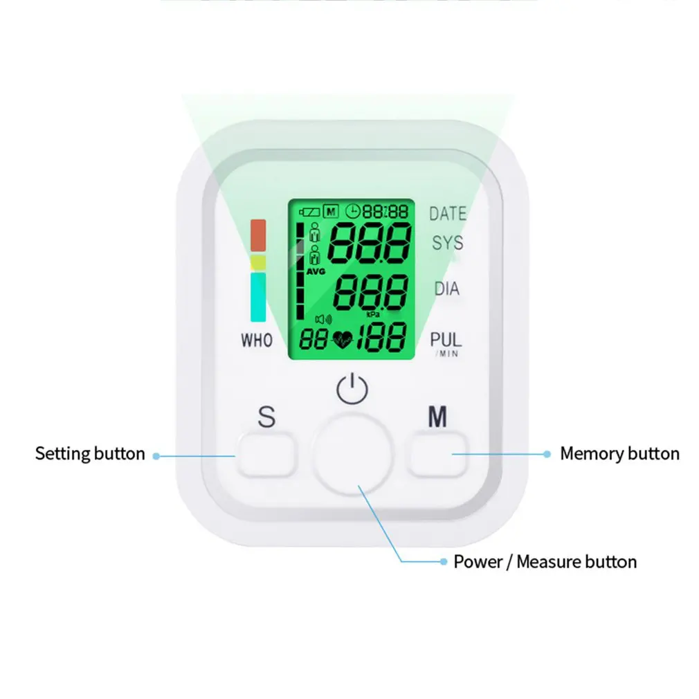 4. Большой цифровой ЖК-дисплей: Этот продукт имеет большой цифровой ЖК-дисплей, поэтому вы можете непосредственно увидеть измерение кровяного давления, что очень удобно.