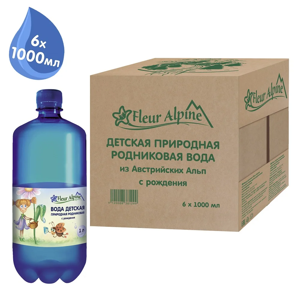 Вода детская природная родниковая, негазированная Fleur Alpine, с рождения, 1л*6 штук