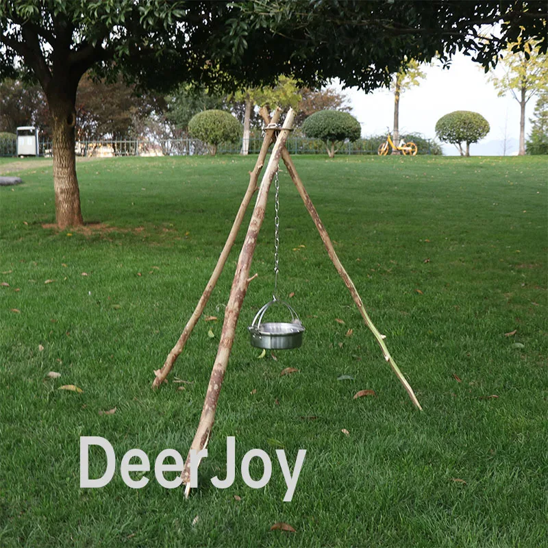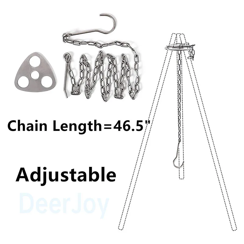 Доска для штатива для кемпинга может быть собрана с 3 ветками, чтобы создать устойчивый штатив, подвесная цепь может быть отрегулирована на подходящую высоту в соответствии с длиной веток, что удобно для приготовления пищи на открытом воздухе и позволяет вам и вашей семье или друзьям наслаждаться приятным временем приготовления пищи на открытом воздухе
