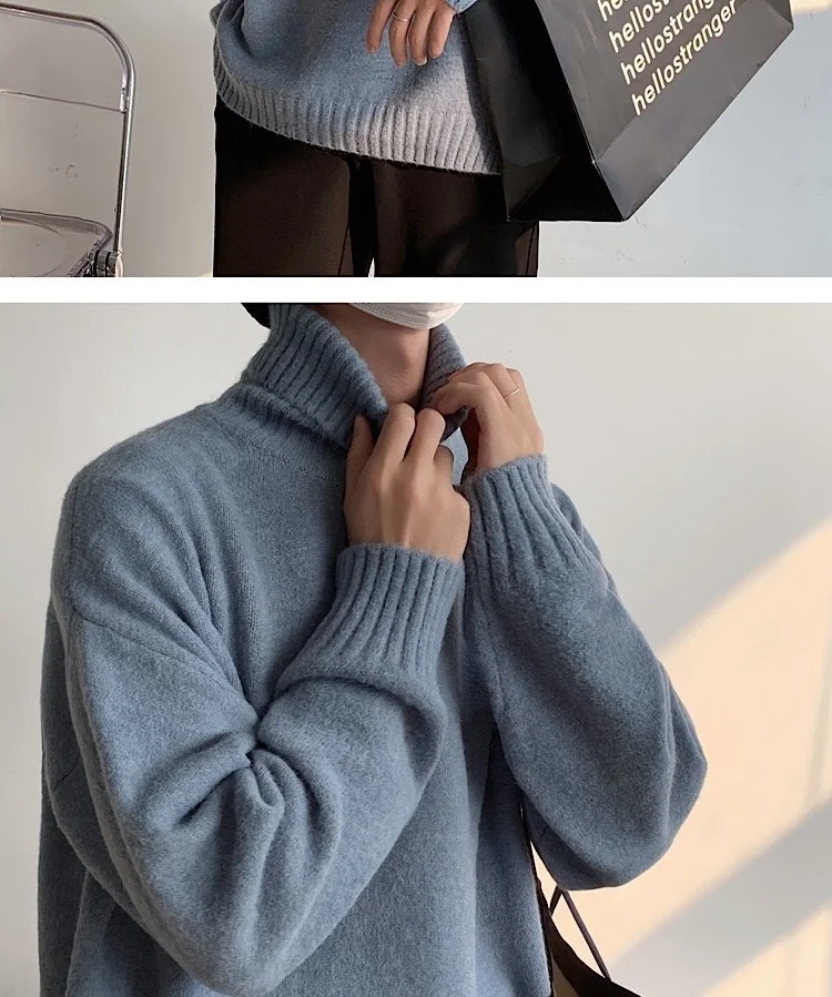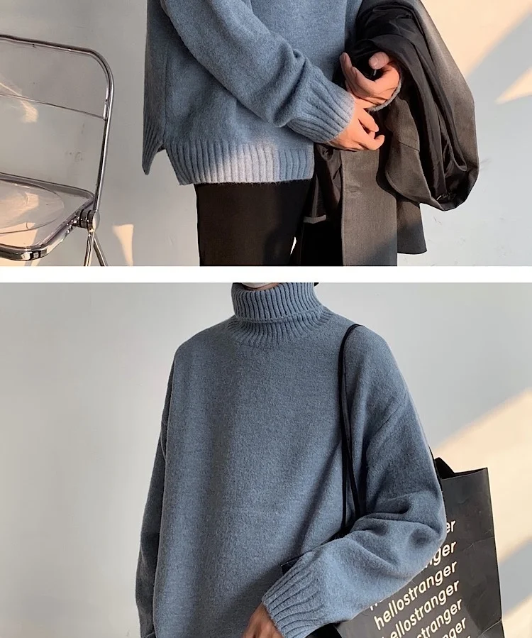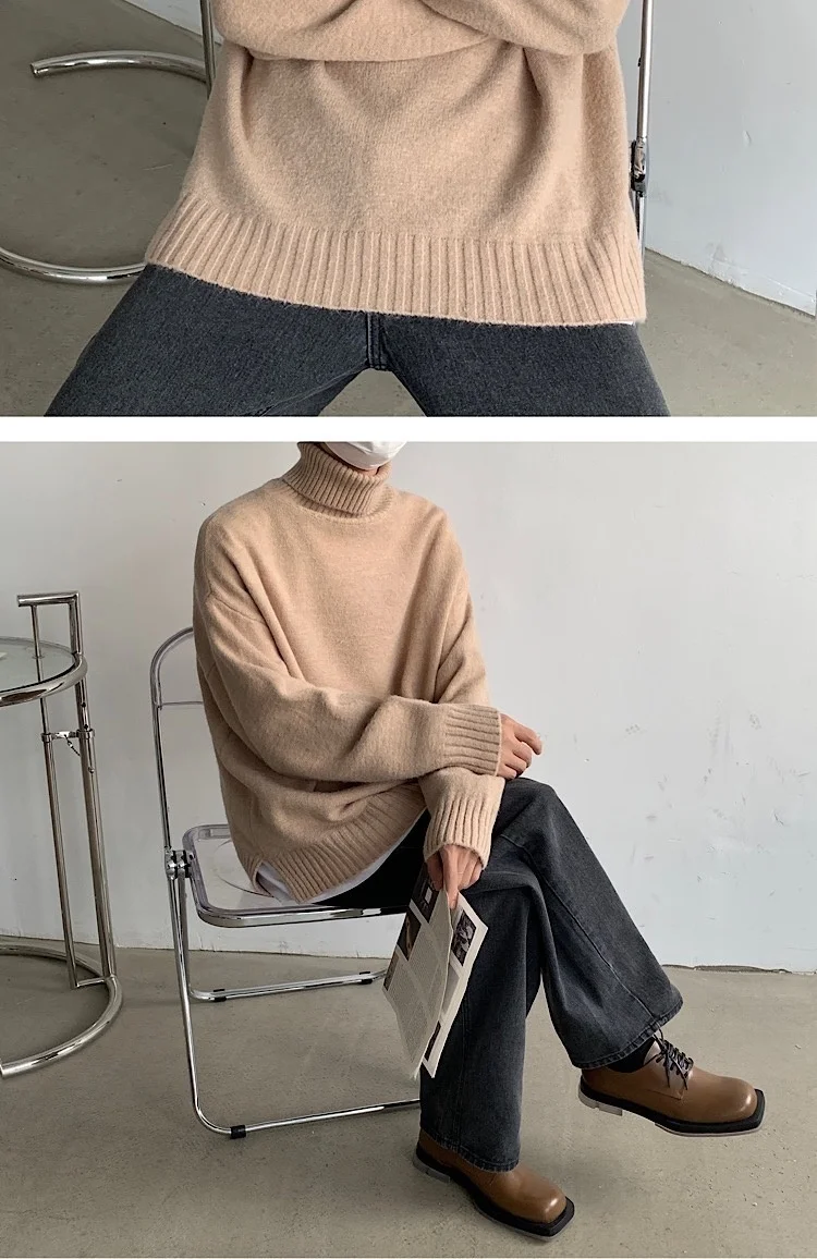 Отзывы о Свитер IEFB мужской с воротником-хомутом модный Свободный трикотажный белый