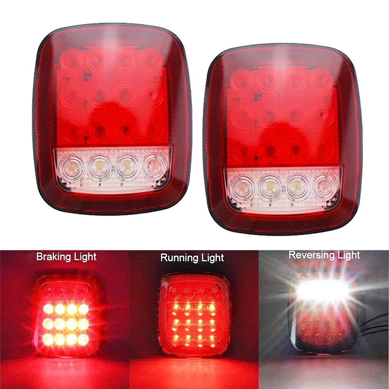 Напряжение: 12 ВСветодиодный Кол-во: 16 шт./каждая лампа, 32 шт./компл.IPX68 устойчивый к коррозииВысокая эффективность выбросов, низкое потребление, энергопотребление.Функции: маркер/стоп/поворот/хвост/задний фонарьПростая установка поверхностного монтажаКоличество СВЕТОДИОДНЫЙ: 16 светодиодный s, включая 12 красных квадратных светодиодный s (стоп, поворот и хвост) и 4 белых квадратных светодиодный s (Резервное/обратное).Напряжение: 12 ВСоветы по подключению провода:Черный провод (отрицательный) + красный провод (положительный), красный светильник высокой яркости.Черный провод (отрицательный) + коричневый провод (положительный), красный светильник с низкой яркостьюЧерный провод (отрицательный) + белый провод (положительный), работает белый светильник.
