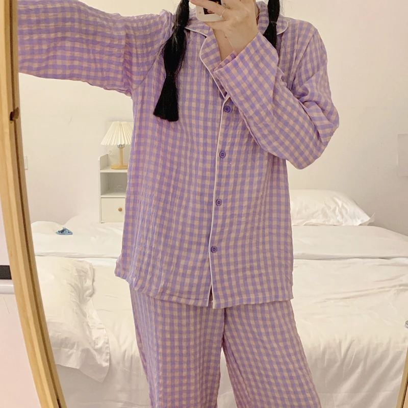 Отзывы о Осенняя клетчатая Хлопковая пижама JRMISSLI кардиган из 2 предметов с длинными
