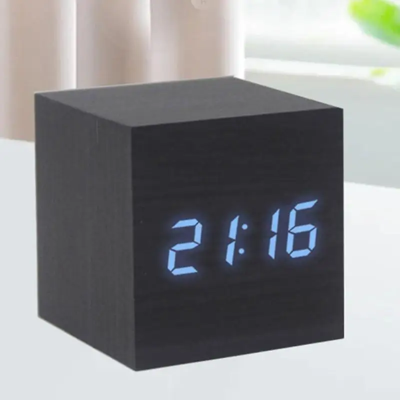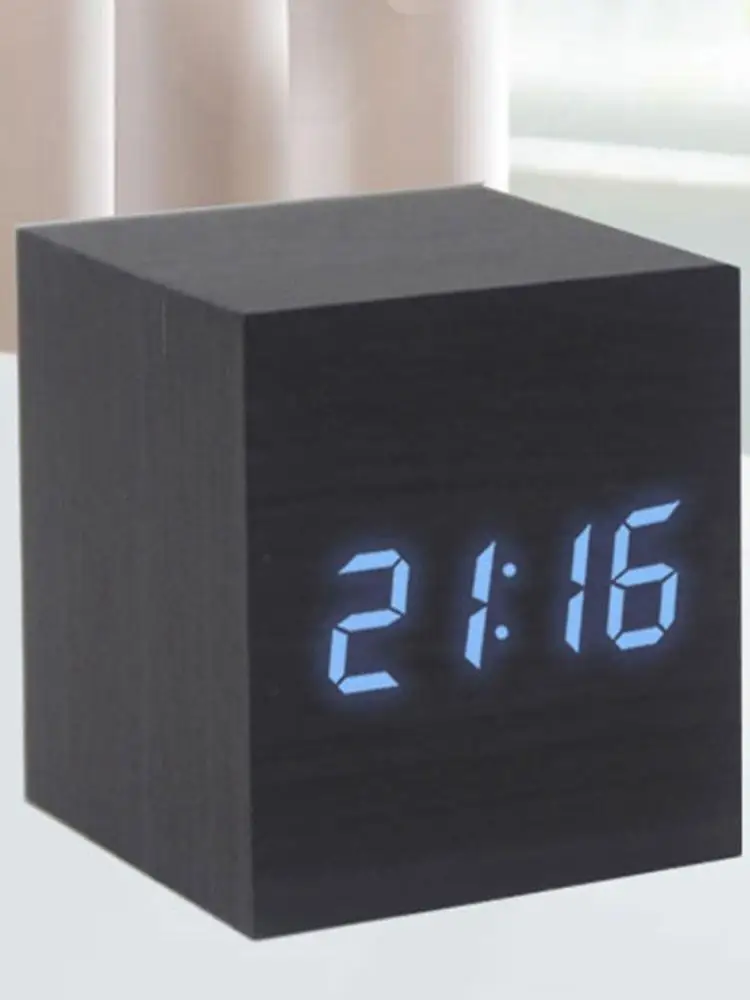 Этот дизайнерский светодиодный цифровой будильник изготовлен из искусственного дерева, а его лицо закрыто внутри дерева.