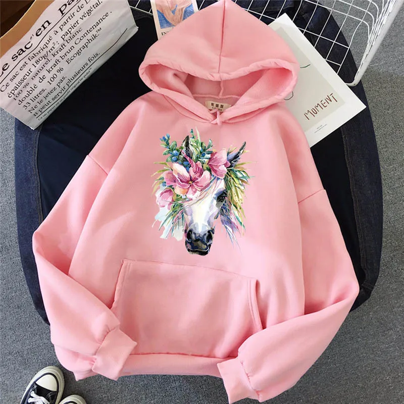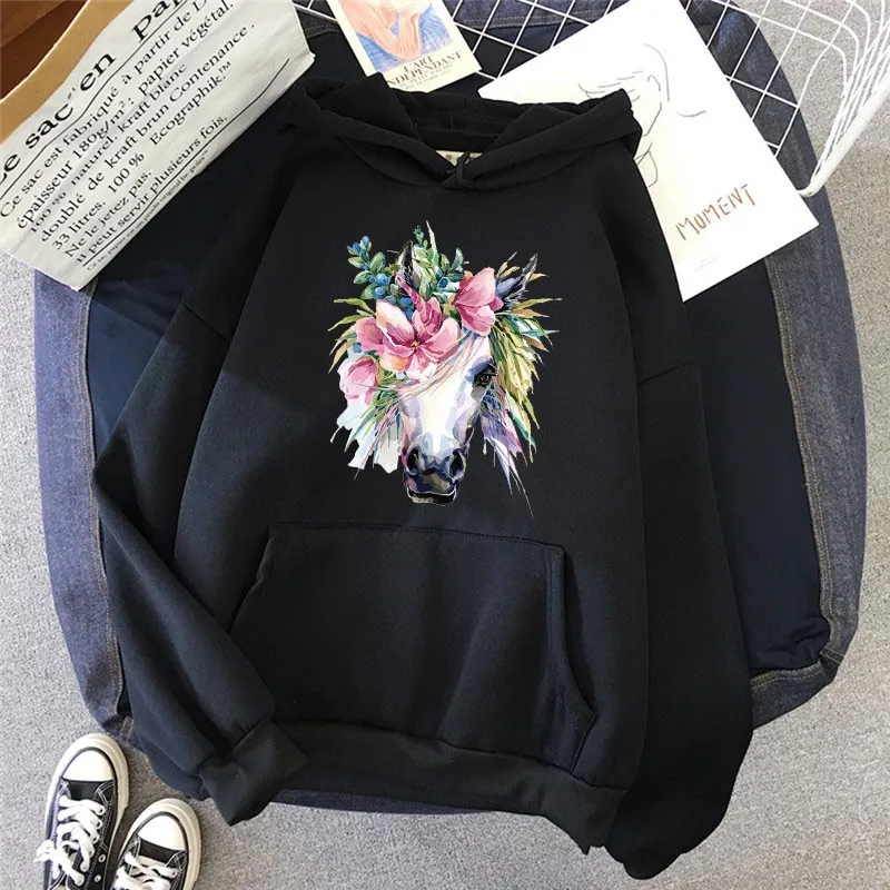 Отзывы о Модная женская толстовка в стиле хип-хоп с длинным рукавом и принтом лошадей