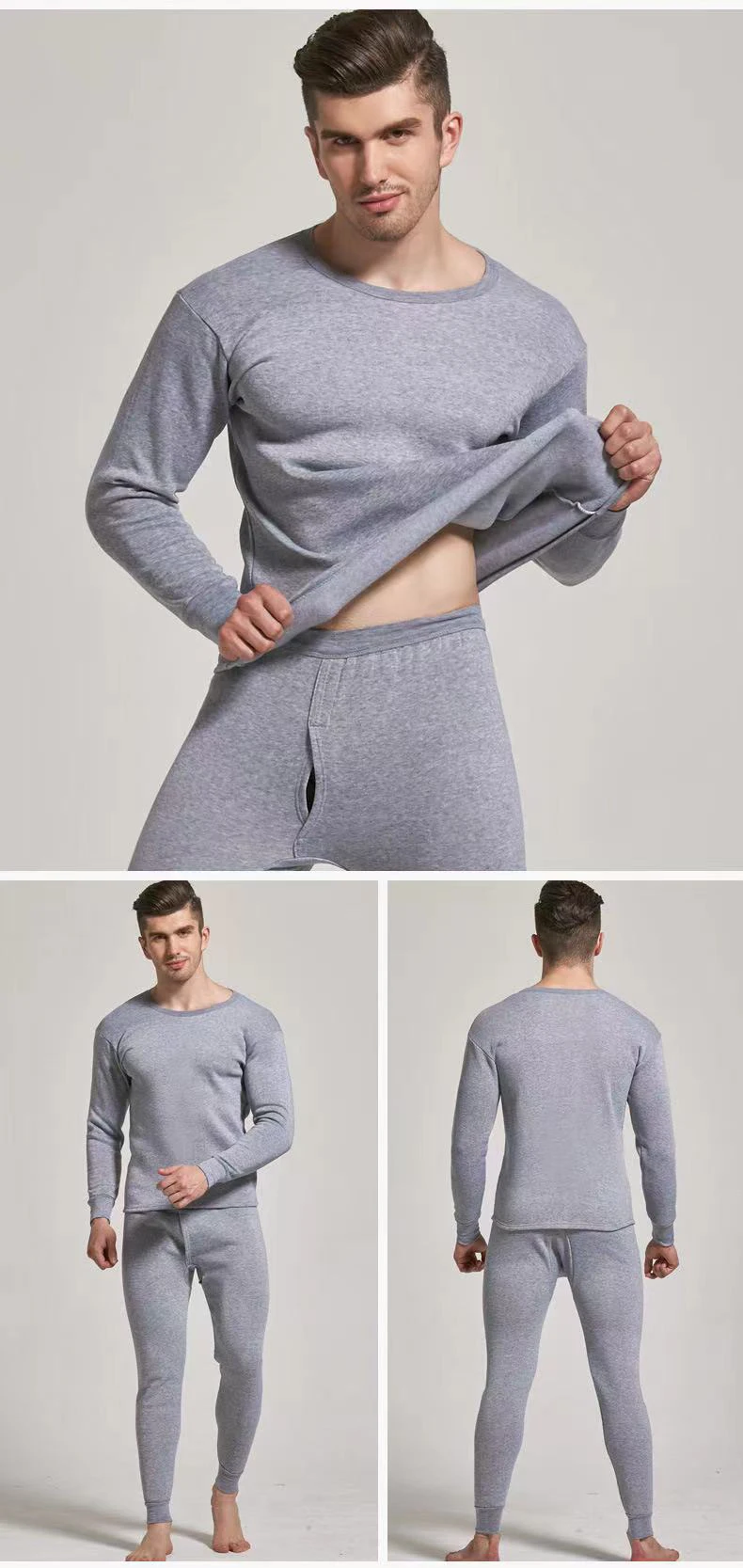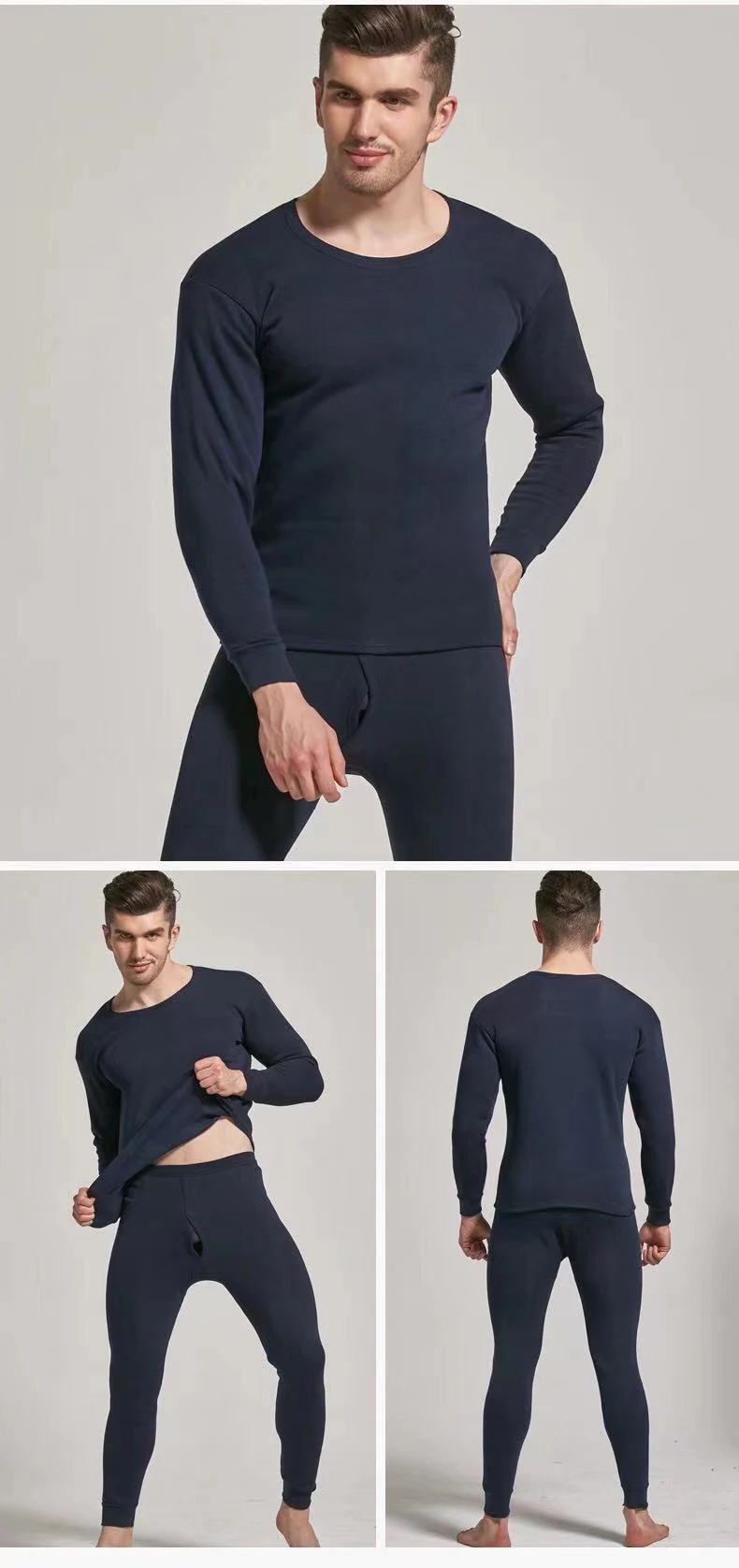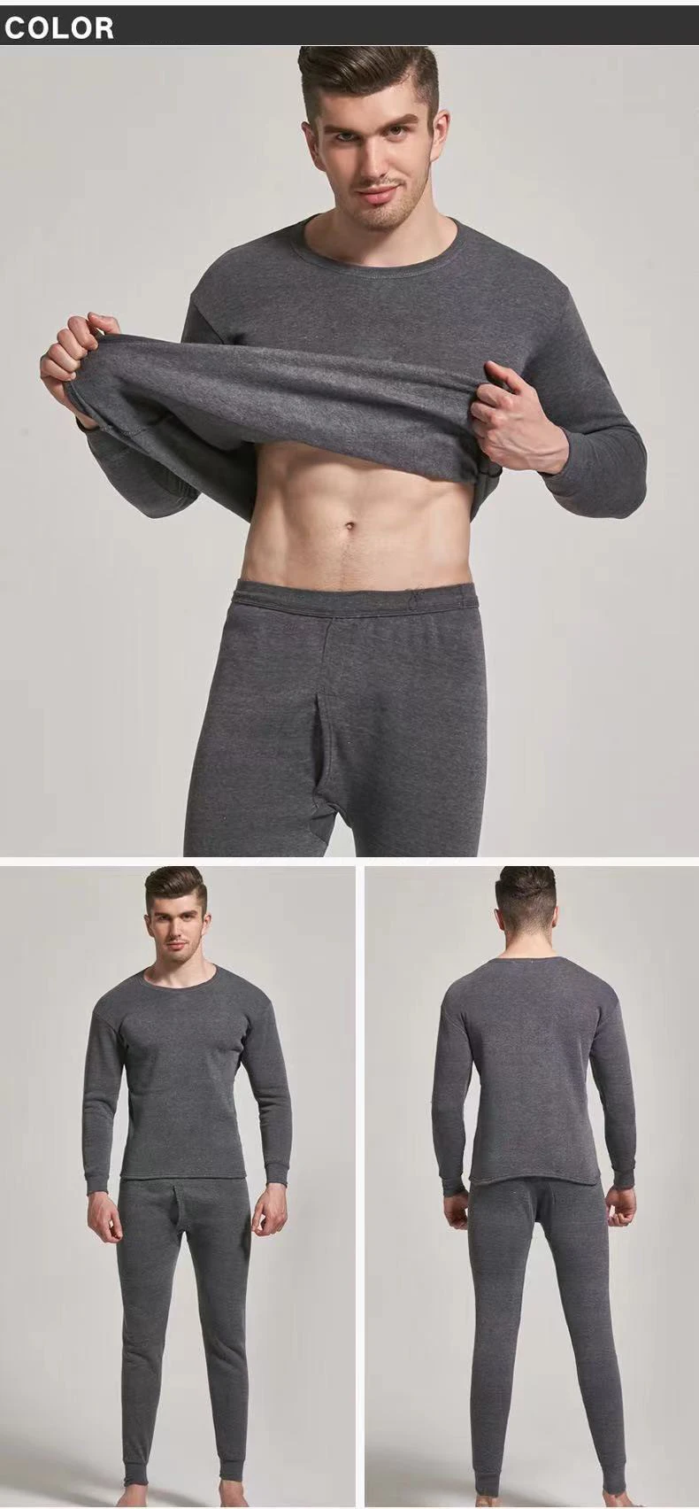 Мужское термобелье, плюшевая утолщенная Зимняя мода, облегающие осенние штаны, костюм с круглым вырезом, рубашка на подкладке