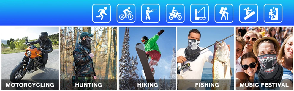 1. Универсальная маска для лица с ушной петлей подходит для всех видов активного отдыха, таких как: катание на лыжах, Велоспорт, треккинг, кемпинг, туризм, Йога, рыбалка, охота, езда, мотоциклистская тактическая тренировка, защита от УФ лучей, предельная защита для активного отдыха.