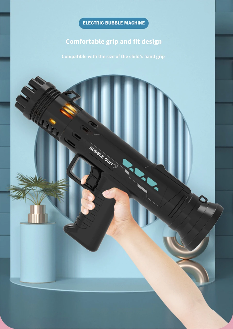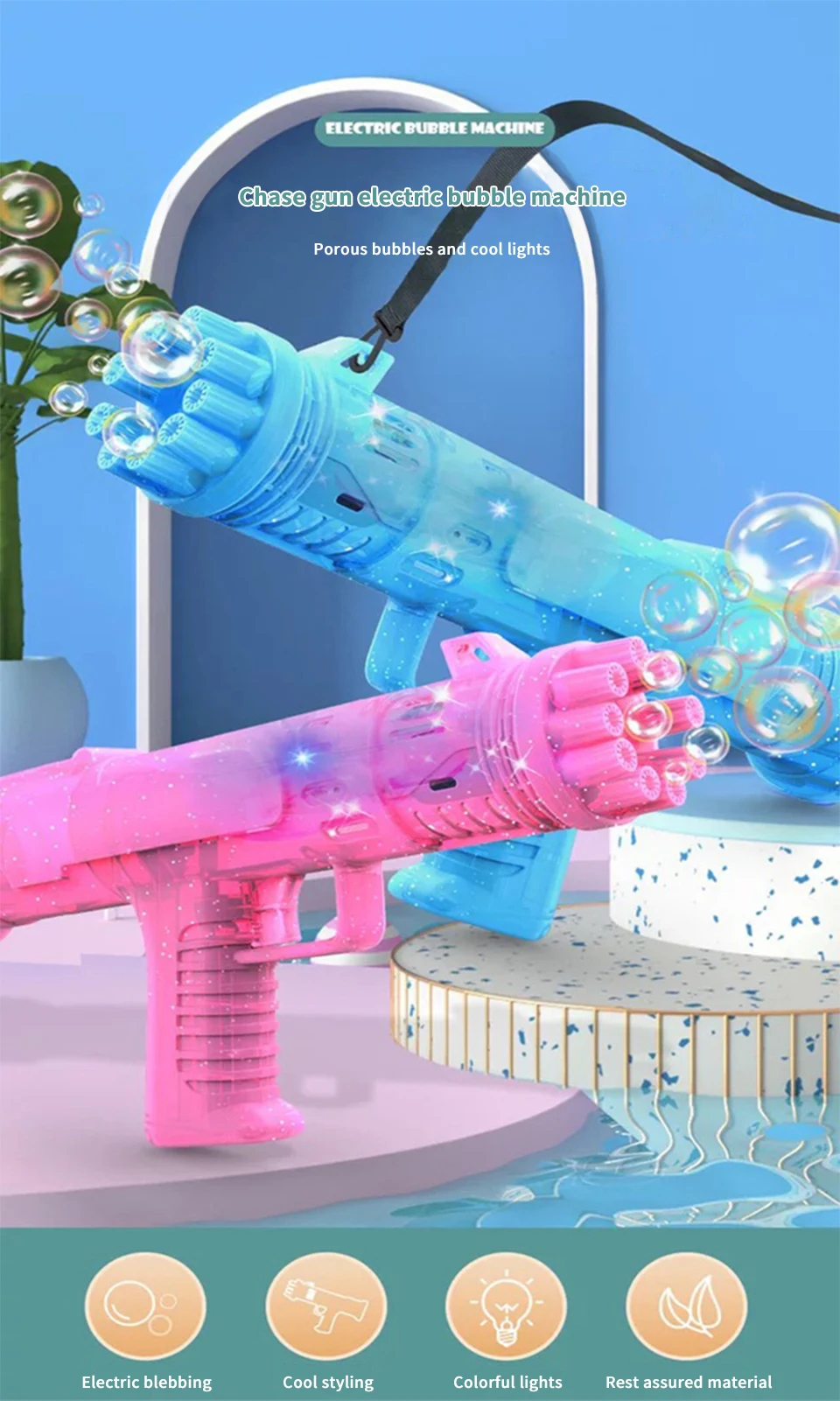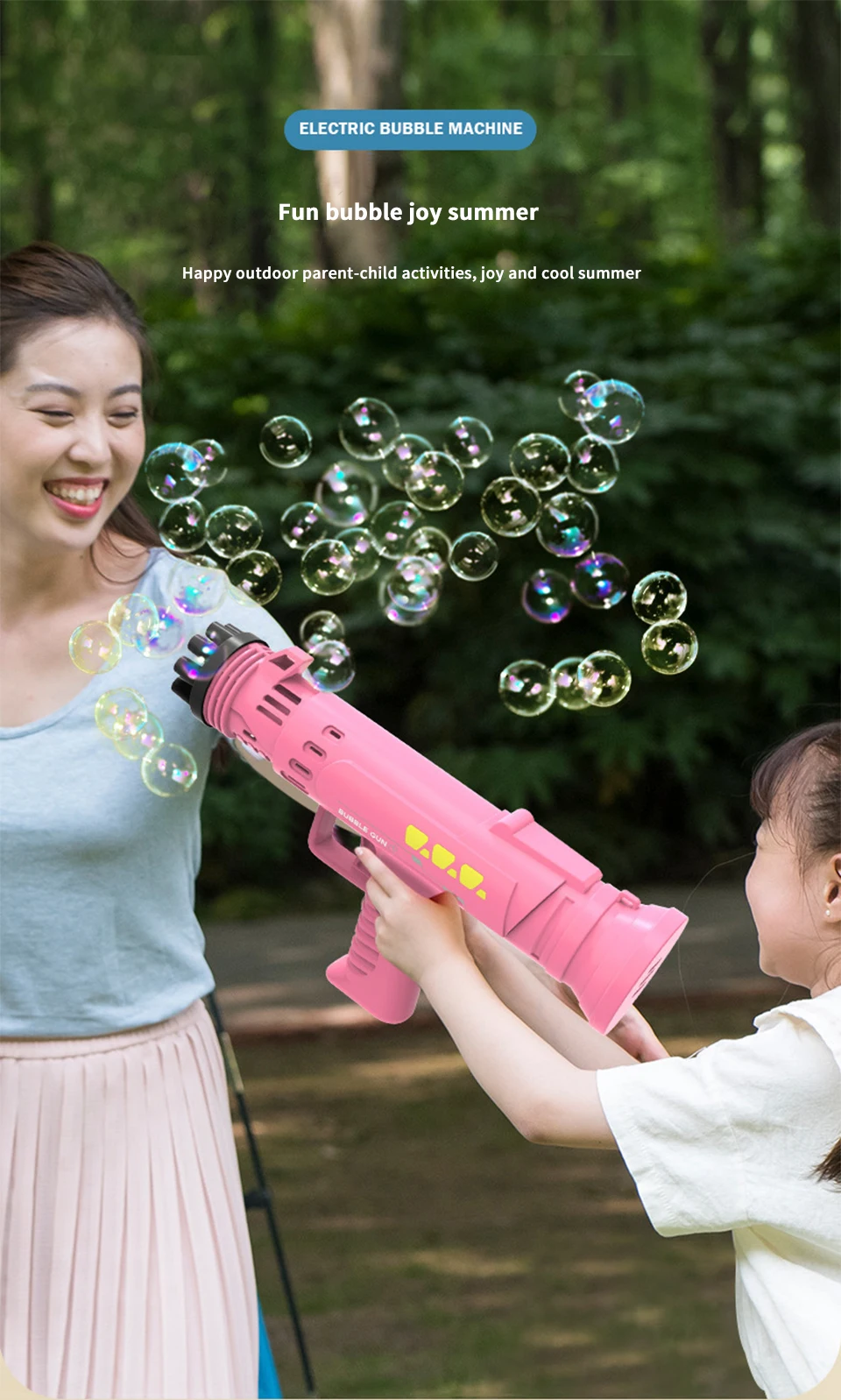 2. Широкое применение: наша машина с пузырьками очень подходит для использования в помещении и на открытом воздухе, также может использоваться в качестве подарка на вечеринку, день рождения или годовщину. Независимо от того, планируете ли вы организовать вечеринку для ваших детей или отпраздновать их дни рождения, наши пушки из пузырьков являются изюминкой вечеринки.