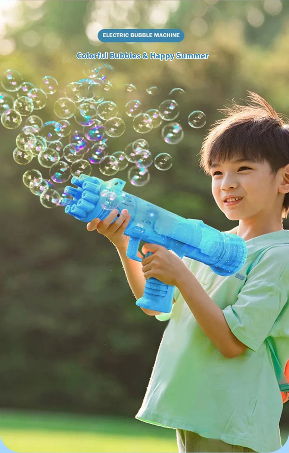 4 、 2-в-1 использования: Этот пузырь машина может быть использована в качестве летний вентилятор с пузырем головки удалены. 2-в-1 использования, сделать вас счастливыми с ней!