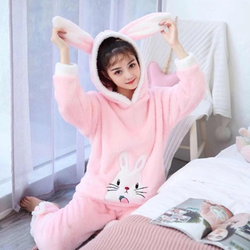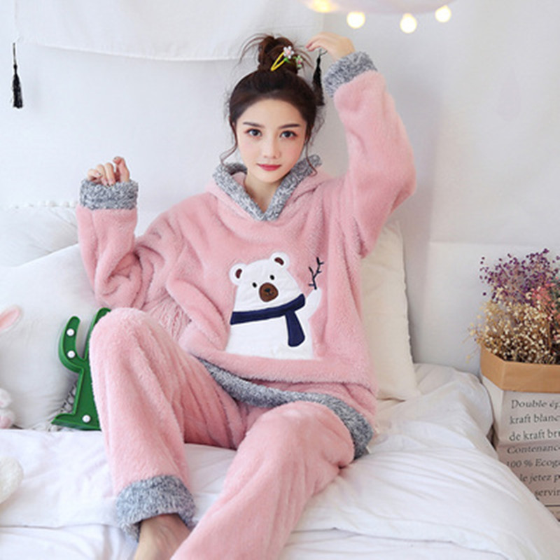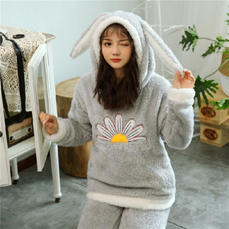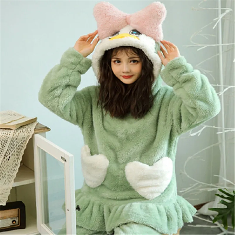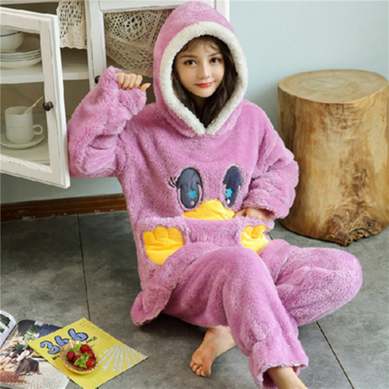 Отзывы о Пижамный комплект Женский фланелевый с капюшоном теплый домашний костюм милыми