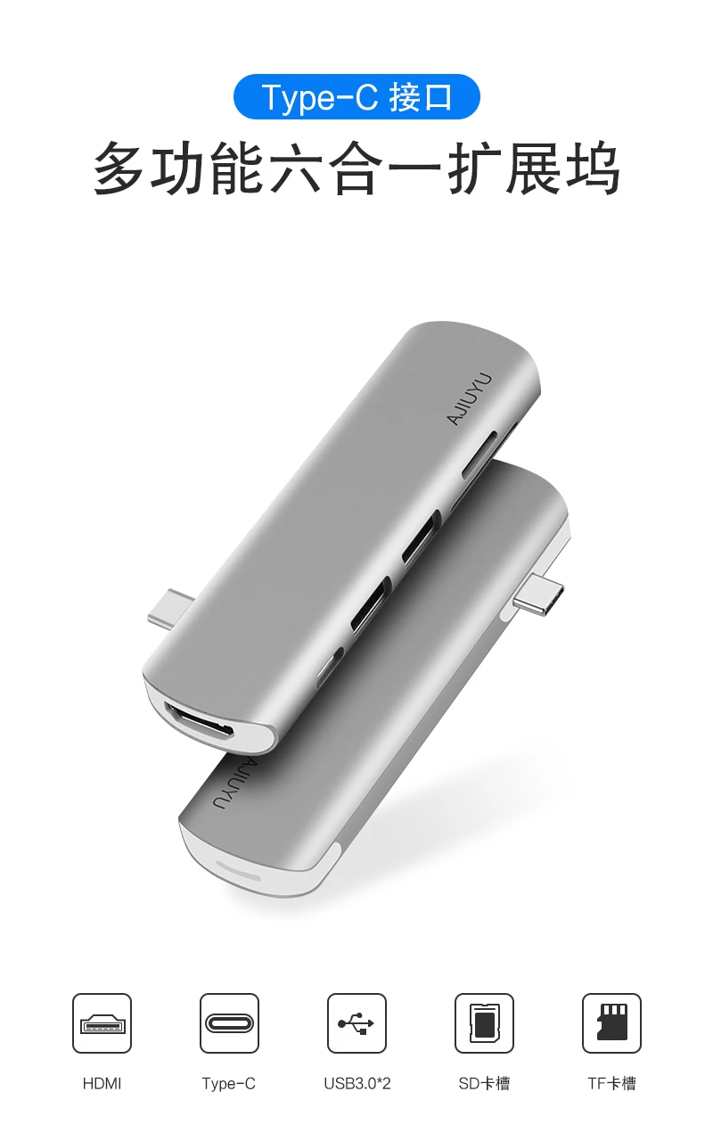 (2) 6 в 1 USB и HDMI : HDMI + 2 * USB3.0 + PD + SD/TF карта Reade