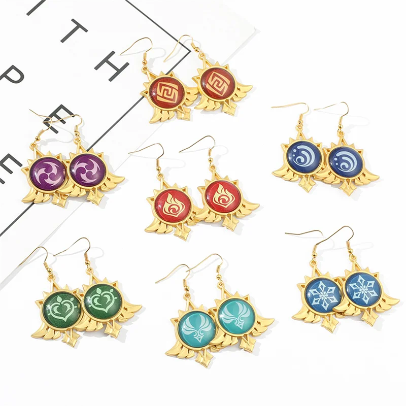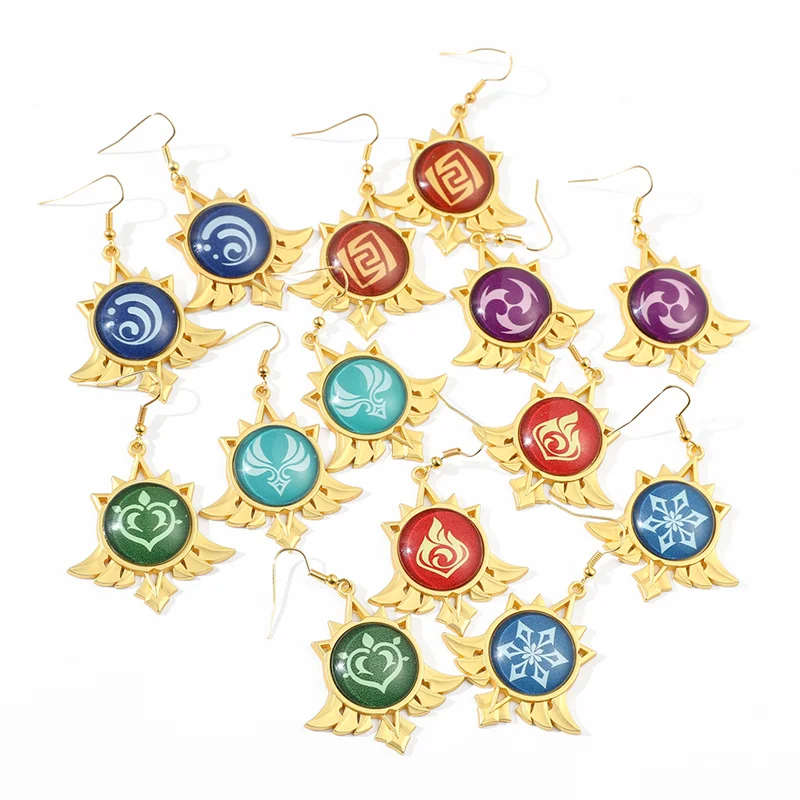 Отзывы о Ударные серьги Game Genshin мультяшный персонаж значок элемент подвеска оружие