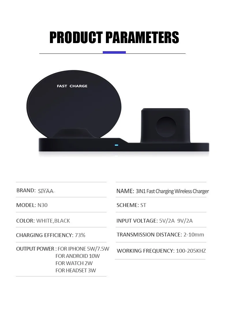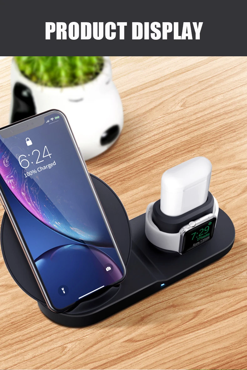 Отзывы о Быстрое беспроводное зарядное устройство SIYAA Qi 3 в 1 для iPhone 11 X 8 6 Apple Watch