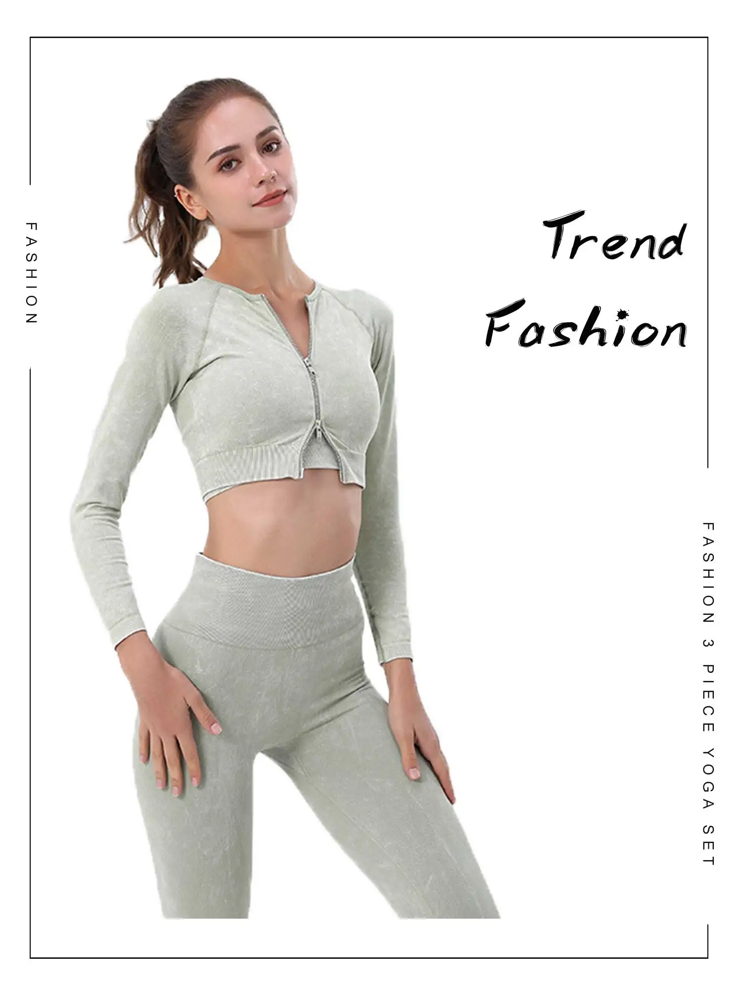 Отзывы о 2/3 шт. Женский бесшовный спортивный костюм с длинным рукавом и молнией спереди -