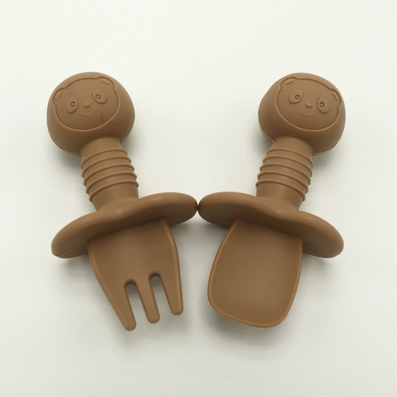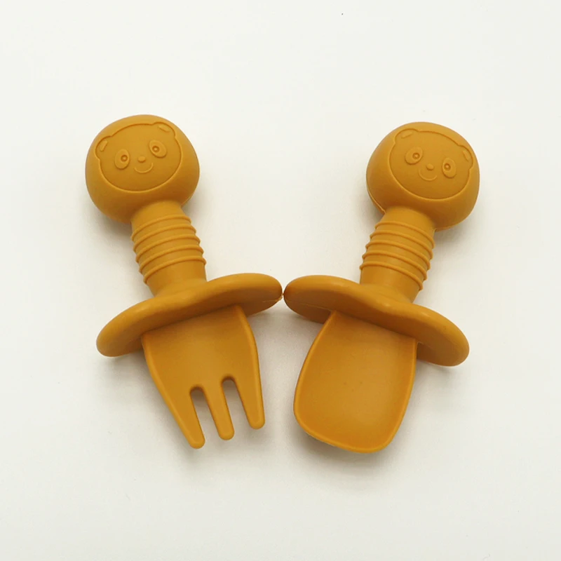 Силиконовая ложка-вилка для младенцев, детская тренировочная ложка-вилка с короткой ручкой для обучения молярному артефакту, силиконовая Мягкая ложка-вилка для младенцев